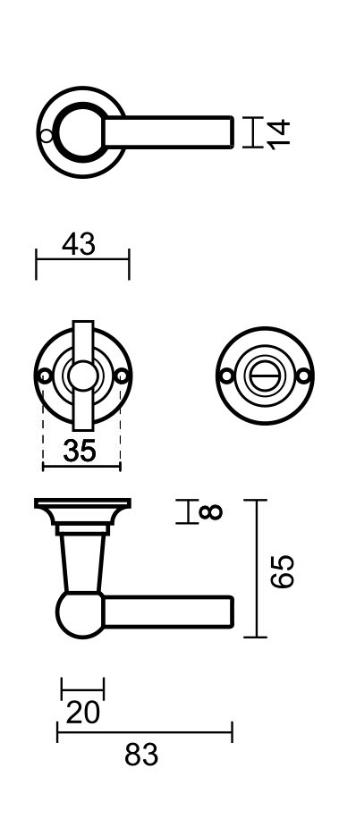 Ces poignées de porte sont disponibles en 4 variantes : sans plaques à clés, avec plaques à clés, avec plaques à cylindre et avec ferrures pour toilettes. Faites votre choix dans le menu déroulant en haut à droite .