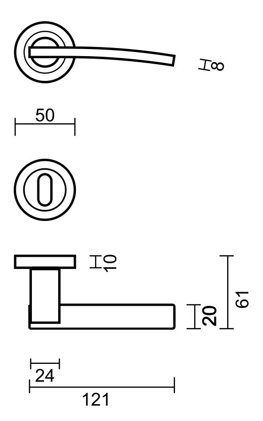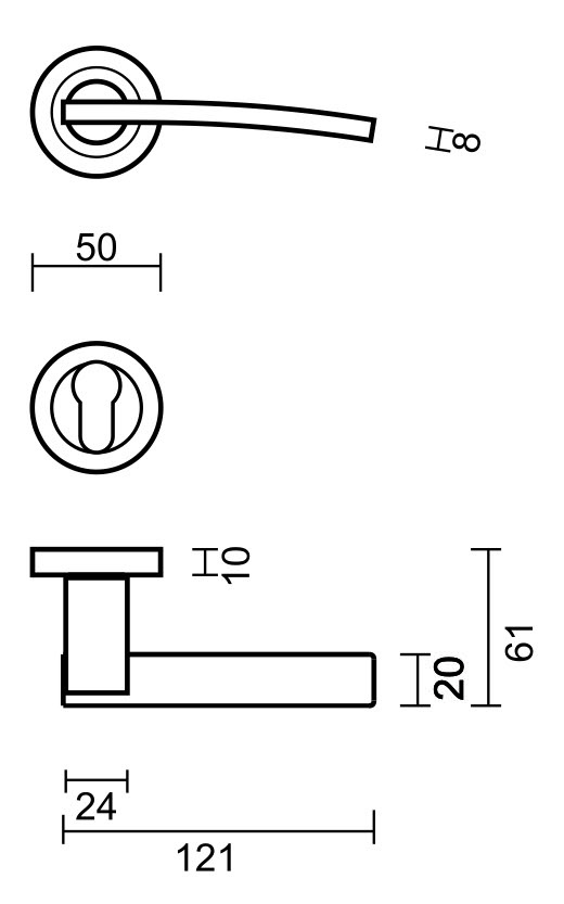 Les poignées de porte sont fournies complètes par paires, comprenant le matériel de montage et une broche carrée de 8x8 mm.