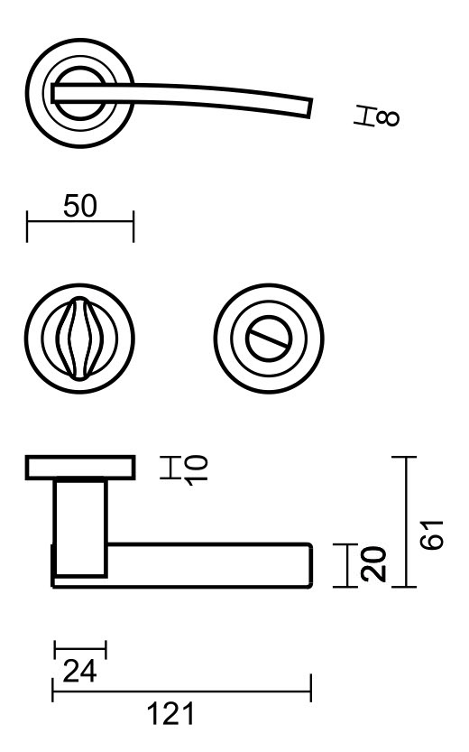 Ces poignées de porte sont disponibles en 4 variantes : sans plaques à clés, avec plaques à clés, avec plaques à cylindre et avec ferrures pour toilettes. Faites votre choix dans le menu déroulant en haut à droite .