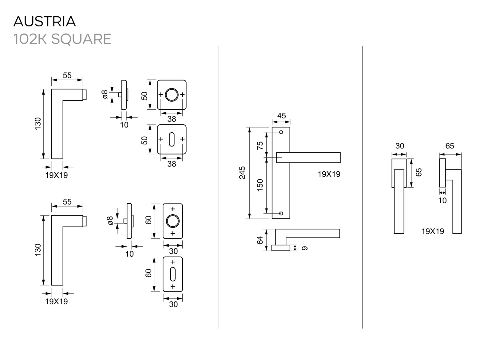 Ces poignées de porte noires sont entièrement carrées de 19x19mm. Cela vous donne une belle poignée de porte pleine entre vos mains.