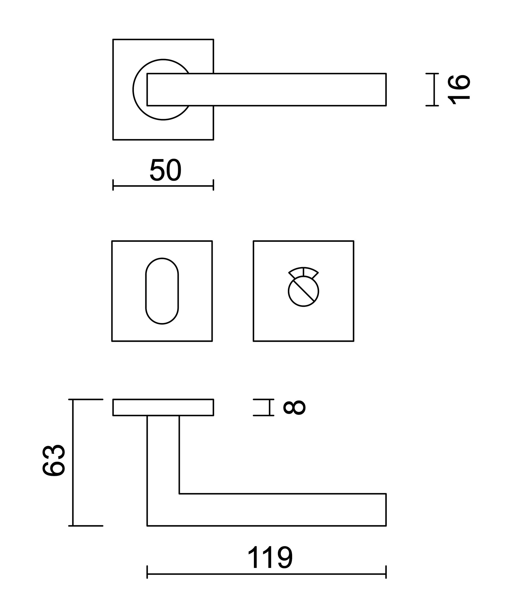 Ces poignées de porte sont disponibles en quatre versions : sans rosace, avec rosace, avec rosace pour cylindre et avec accessoires de toilette. Faites votre choix dans le menu déroulant en haut à droite .