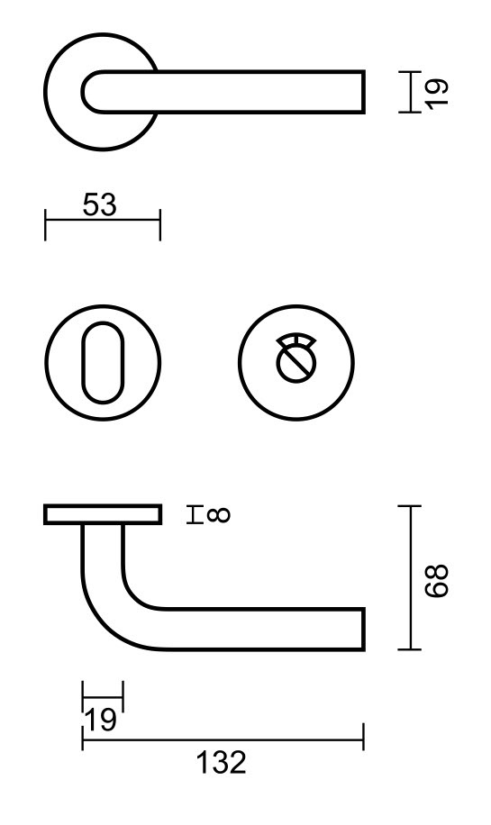 Ces poignées de porte sont disponibles en 4 versions : sans plaque de clé, avec plaque de clé, avec plaque de cylindre et avec garniture WC. Faites votre choix dans le menu déroulant en haut à droite .
