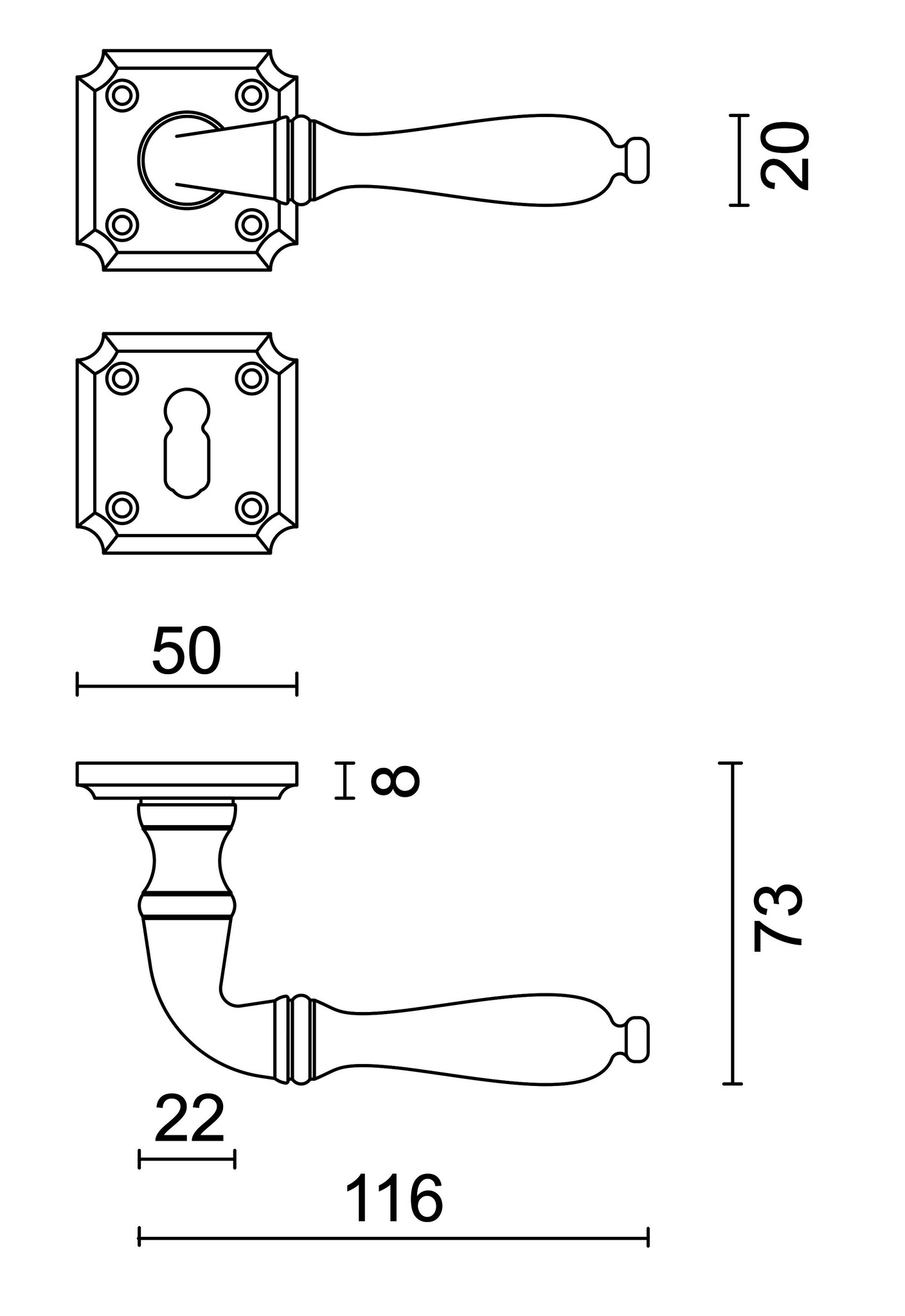 Ces poignées de porte sont disponibles en 4 variantes : sans plaques à clés, avec plaques à clés, avec plaques à cylindre et avec ferrures pour toilettes. Faites votre choix dans le menu déroulant en haut à droite .