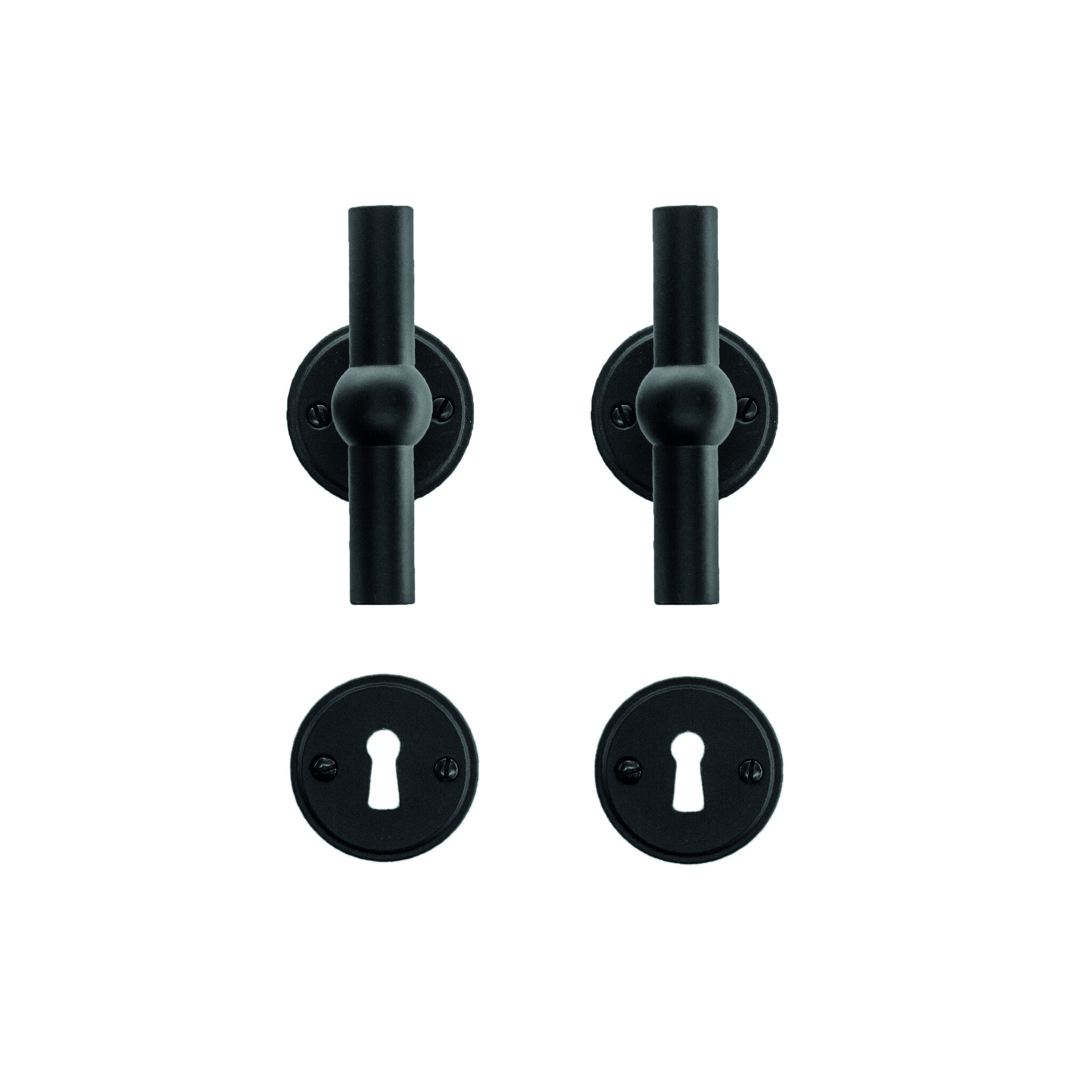 Ces poignées de porte de style campagnard se composent d'une combinaison T+T et sont fournies sous forme d'ensemble complet comprenant des rosaces, une goupille carrée de 8x8 mm et du matériel de montage.