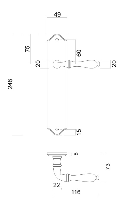 Les poignées de porte sont fournies sur une plaque rustique par paire avec ou sans ouverture à clé et conviennent aux portes intérieures de 38-43 mm.