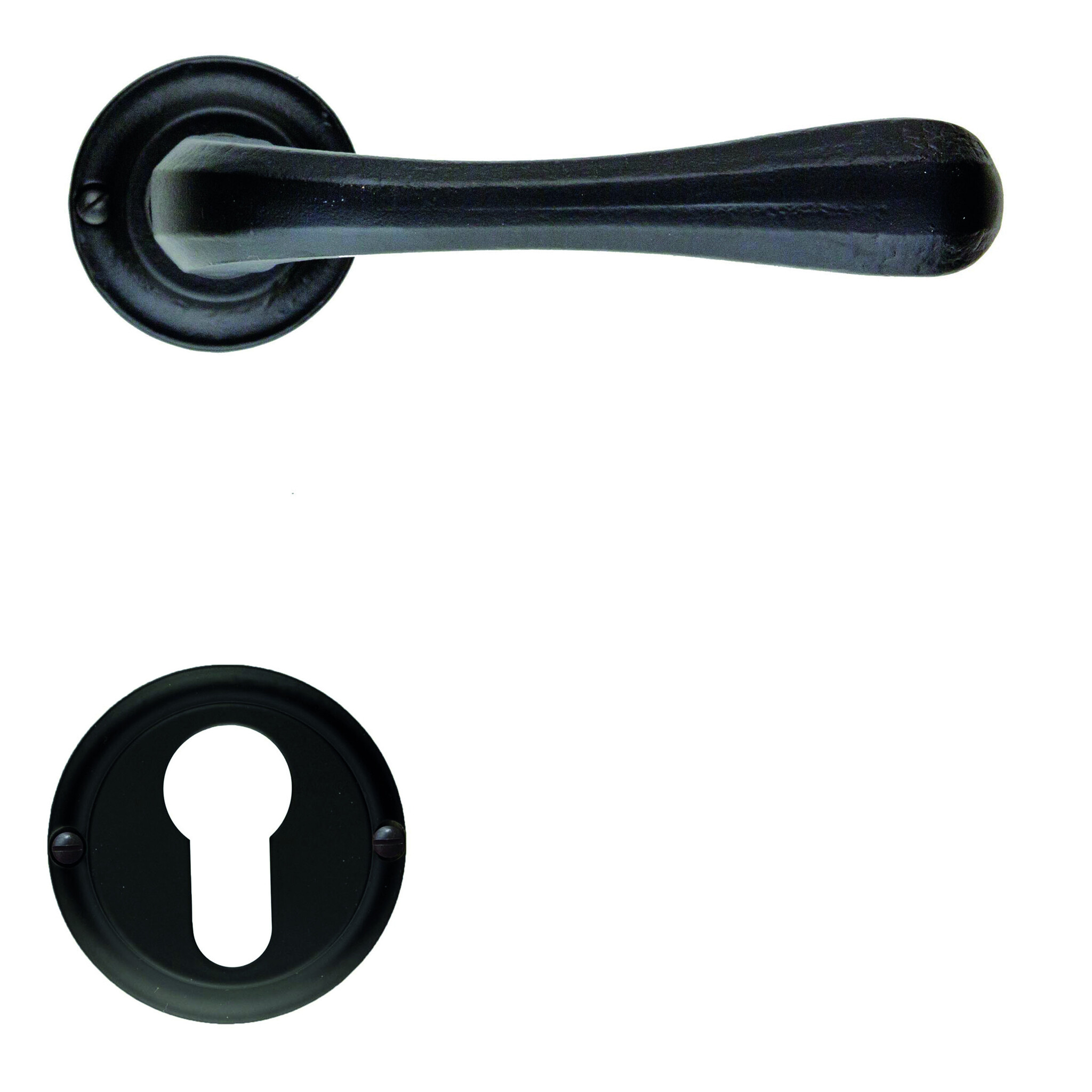 Ces solides poignées de porte noires classiques reposent sur une rosace ronde de 42 mm et sont fournies avec une broche carrée (8x8 mm) et du matériel de montage.