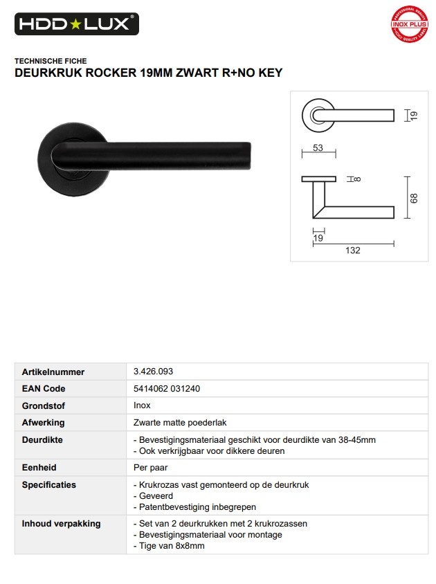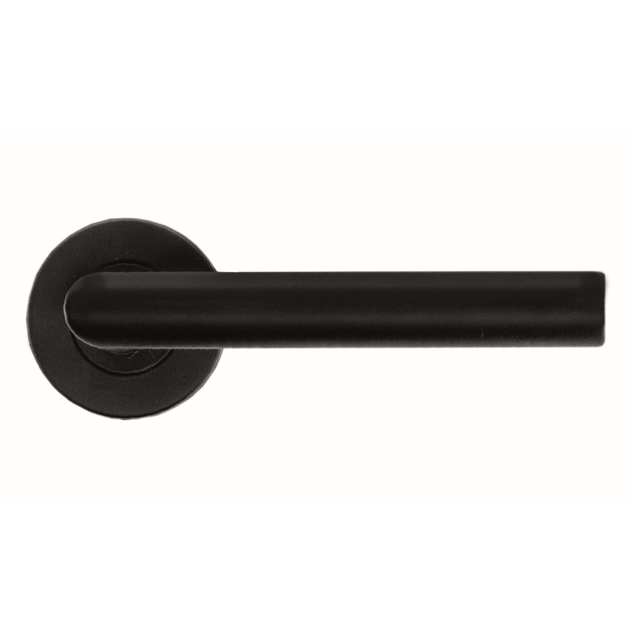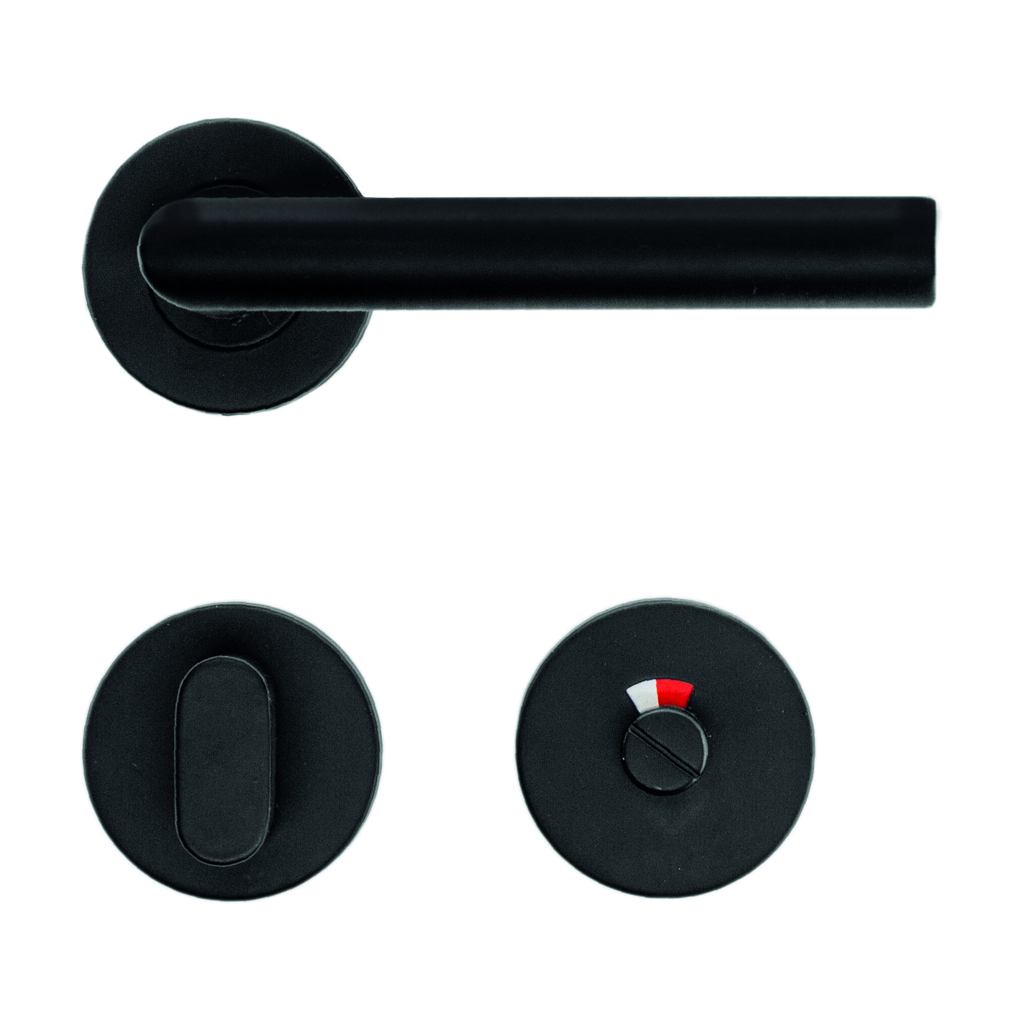 Il s'agit d'une poignée de porte en acier inoxydable après quoi elle est dotée d'une couche de revêtement noir mat (lisse) (RAL9005).