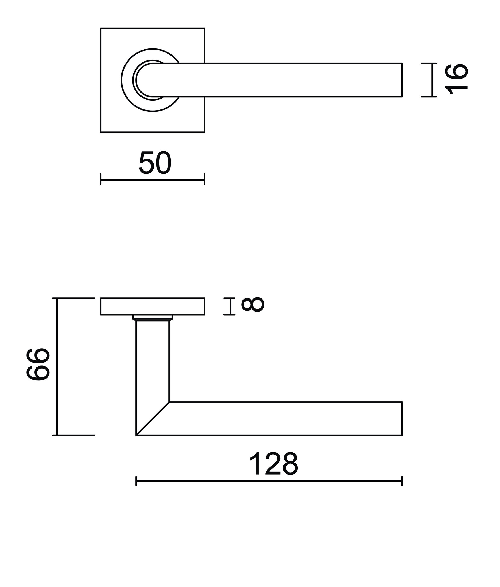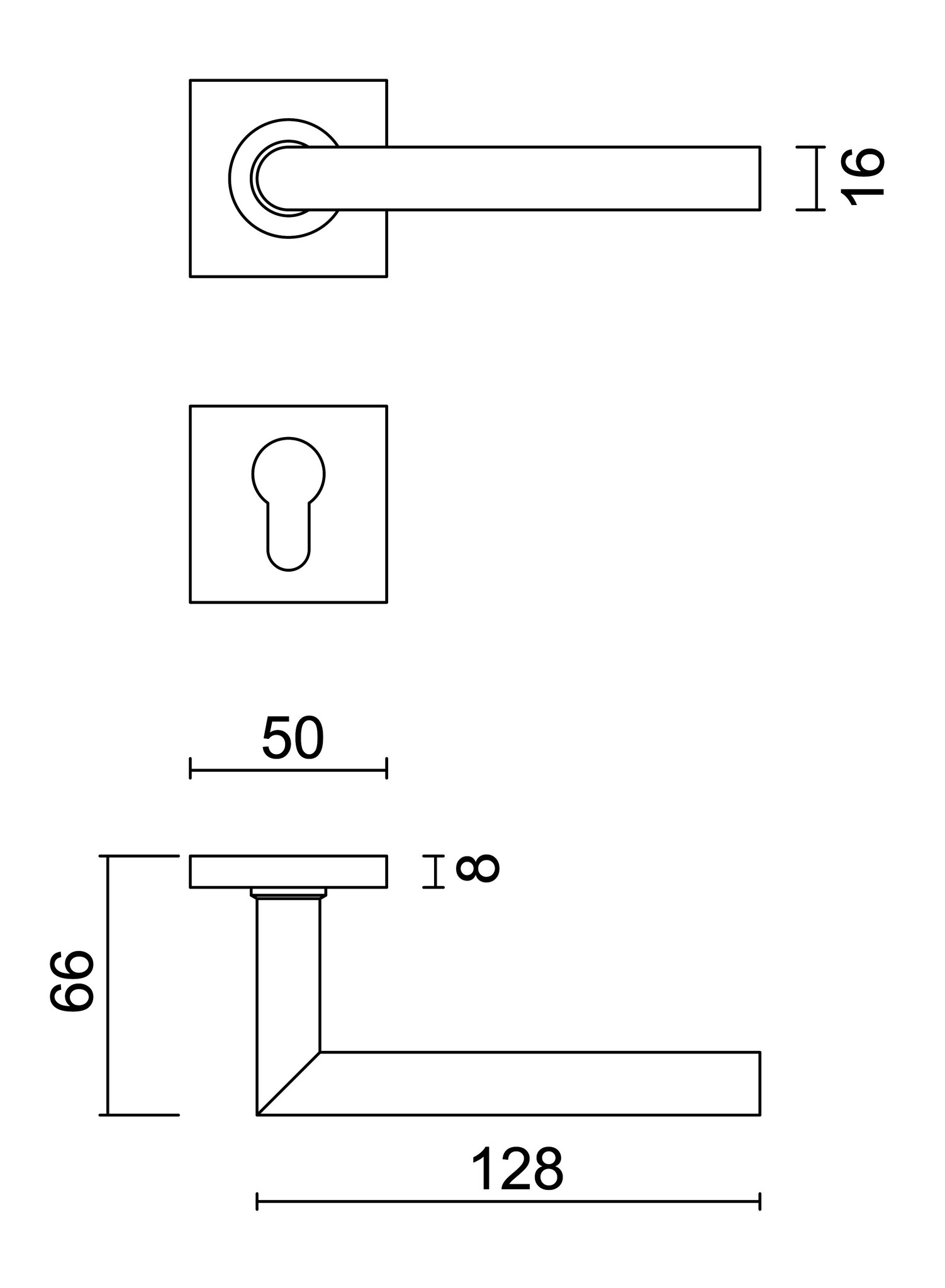 Le manche de ce modèle est légèrement plus fin que la version ronde (16 mm au lieu de 19 mm). Cela permet de rendre jolie la proportion entre la poignée ronde et la rosace carrée.