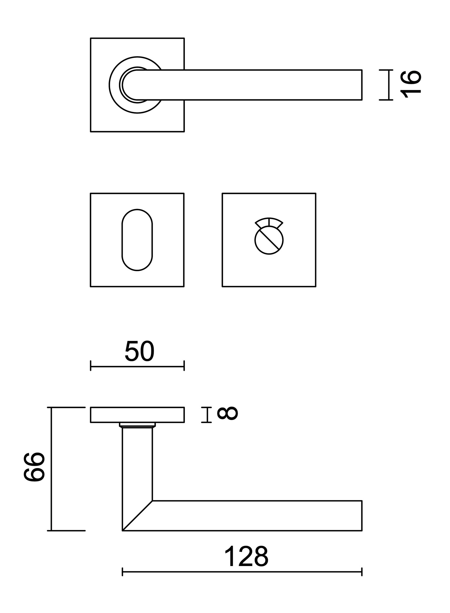 Ces poignées de porte sont disponibles en 4 variantes : sans plaques à clés, avec plaques à clés, avec plaques à cylindre et avec ferrures pour toilettes. Faites votre choix dans le menu déroulant en haut à droite .