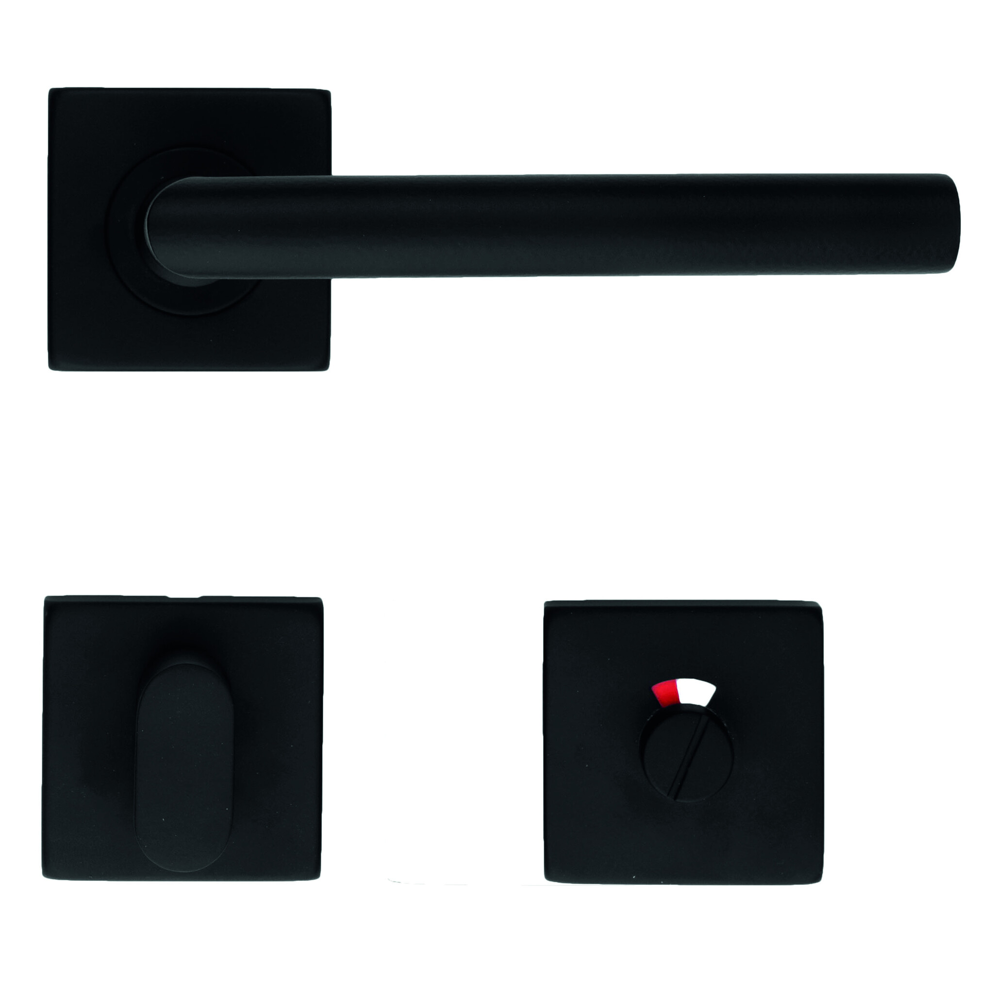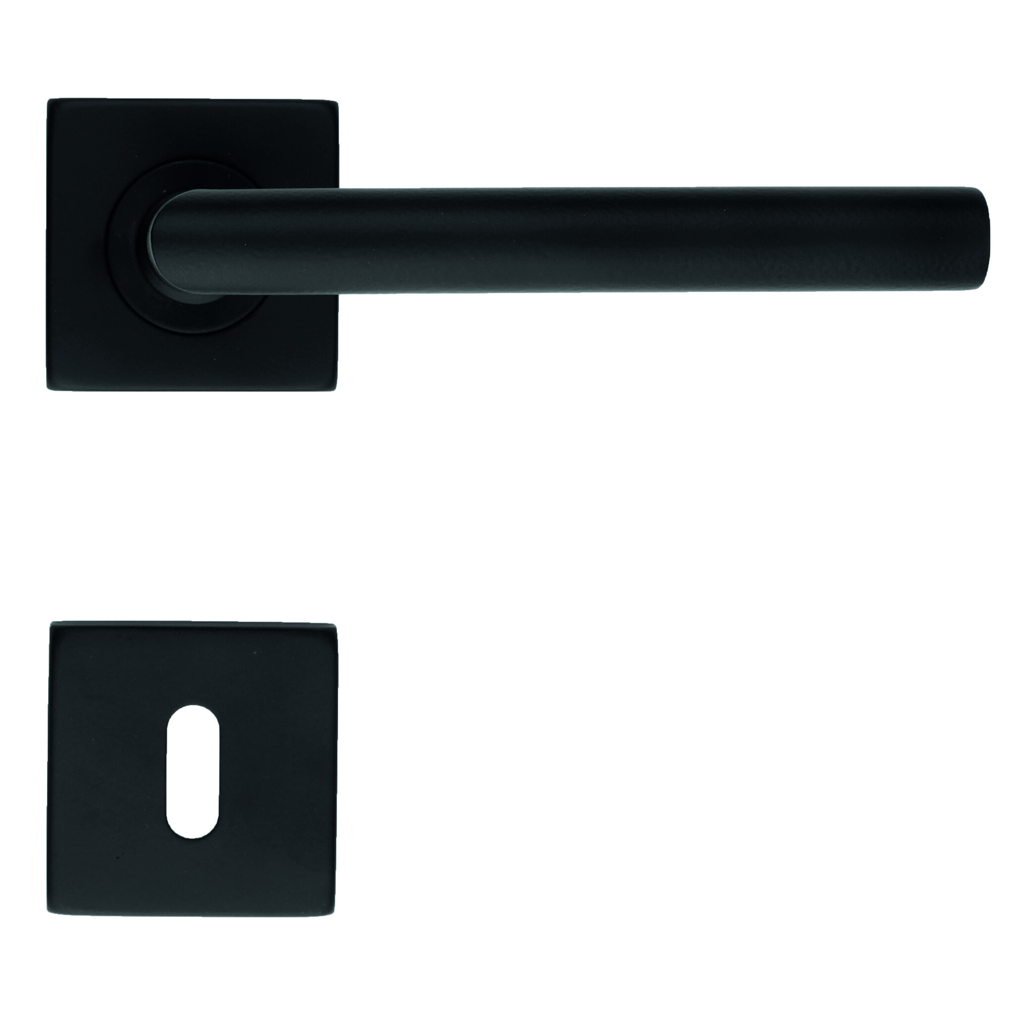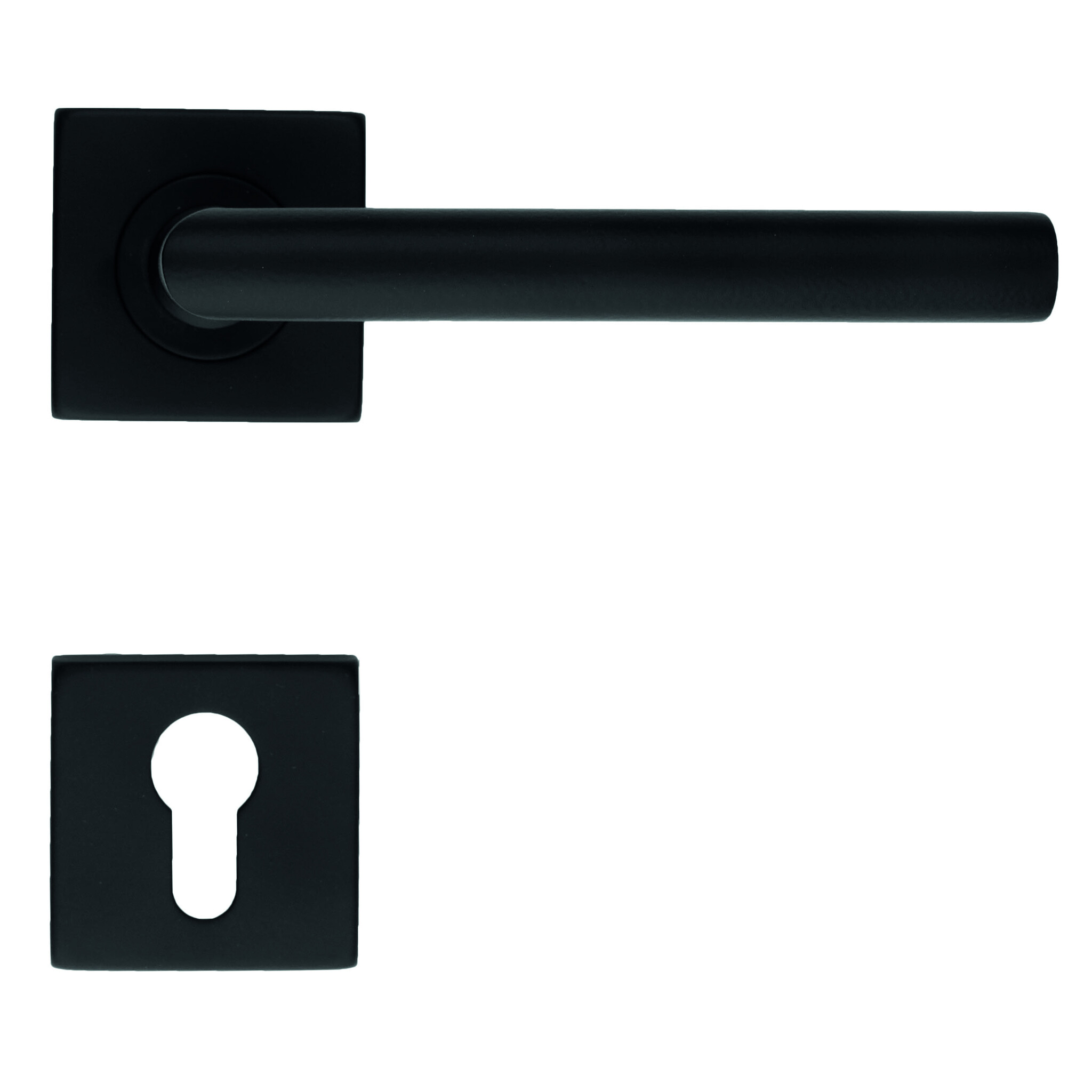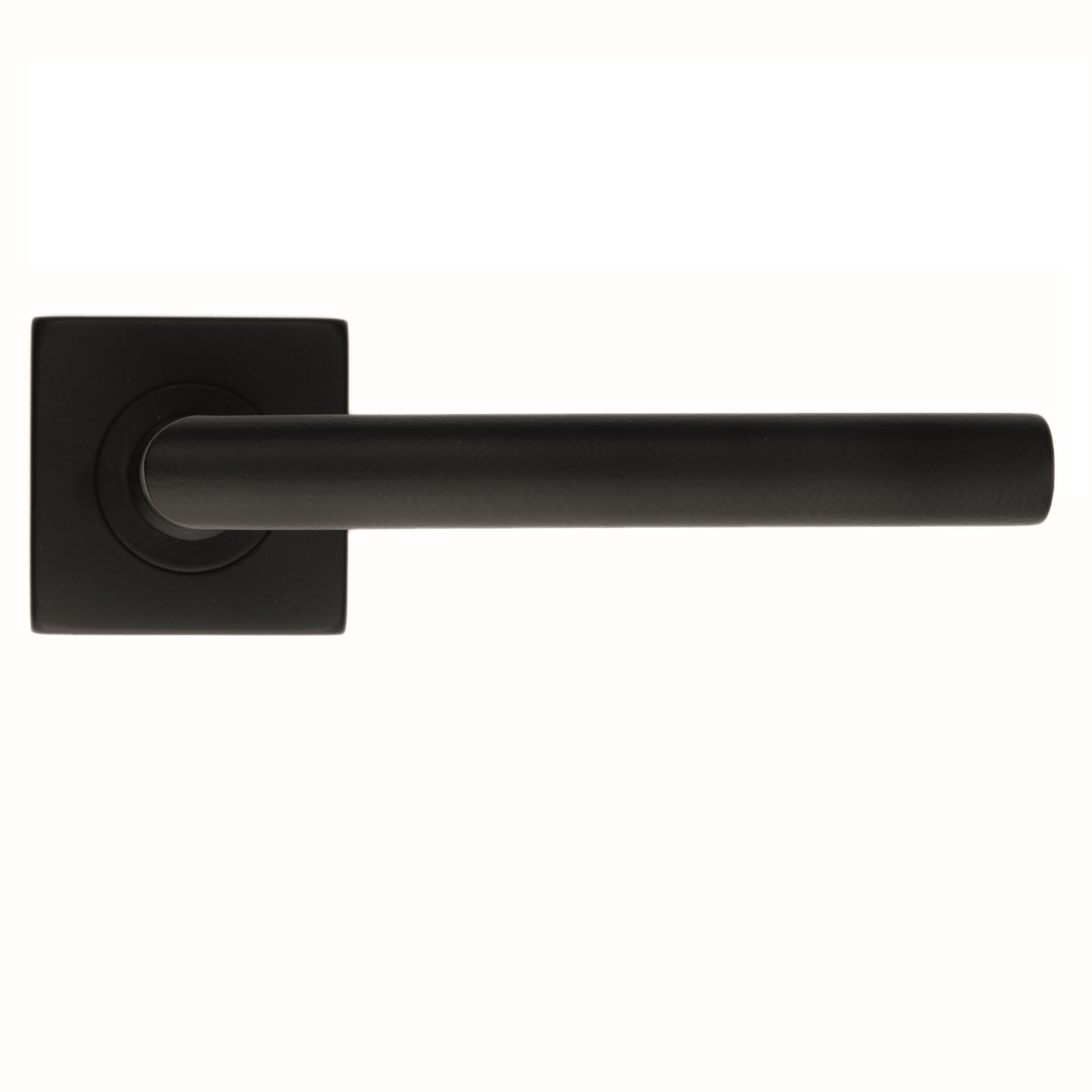 Poignée de porte forme I 16mm noire sur rosace carrée disponible en 4 variantes