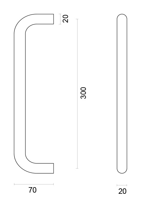 Belles poignées de porte rondes en forme de U avec des coins arrondis en acier inoxydable et finies avec un revêtement texturé noir mat (RAL9005) résistant aux UV, ce qui rend ces poignées de porte très adaptées aux portes extérieures.