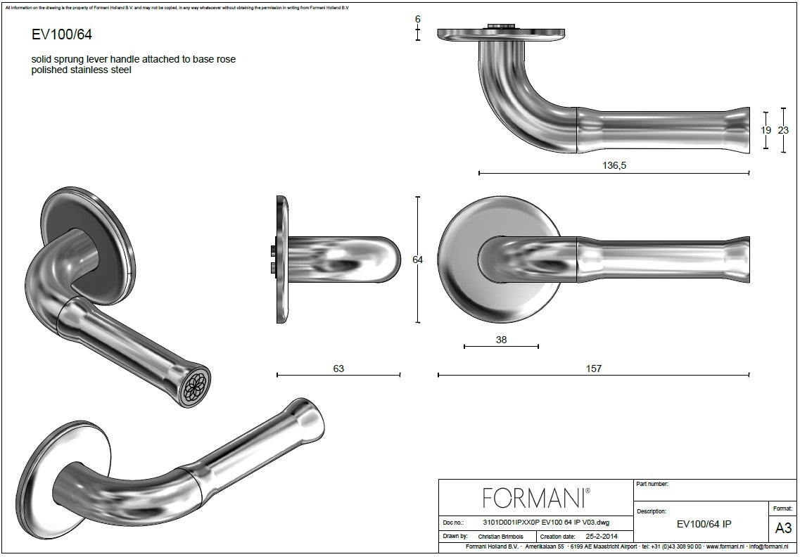 Ses courbes subtiles et sa silhouette élégante confèrent à la poignée de porte une allure raffinée et architecturale, parfaitement adaptée aux intérieurs contemporains. Sa construction robuste lui assure une grande solidité et une fiabilité à toute épreuve au quotidien. La poignée EV100/64 fait partie d'une gamme complète comprenant des rosaces, des poignées de fenêtre et des accessoires assortis, vous permettant ainsi de parfaire votre intérieur avec style, jusque dans les moindres détails.