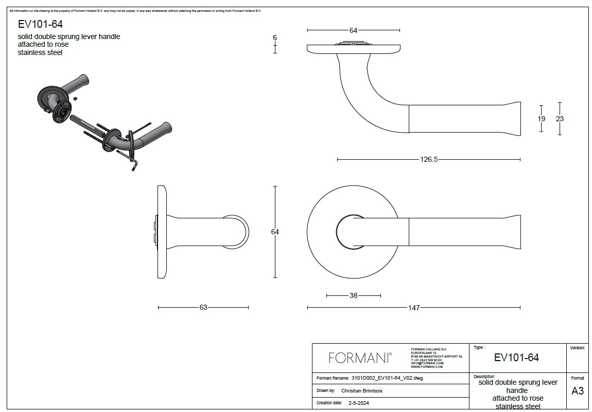 Ses courbes subtiles et sa silhouette élégante confèrent à la poignée de porte une allure raffinée et architecturale, parfaitement adaptée aux intérieurs contemporains. Sa construction robuste lui assure une grande fiabilité au quotidien. La poignée EV101/64 fait partie d'une collection complète comprenant des rosaces, des poignées de fenêtre et des accessoires assortis, vous permettant ainsi de parfaire votre intérieur avec style, jusque dans les moindres détails.