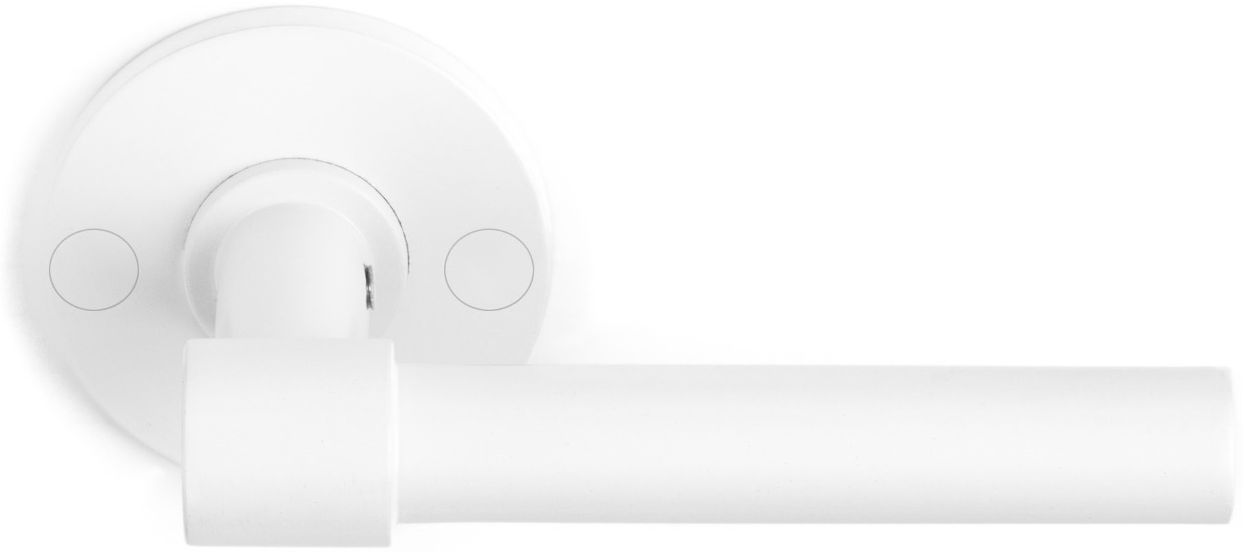 Ces poignées de porte blanches sont montées sur des rosaces rondes à ressort d'un diamètre de 50 mm et d'une épaisseur de seulement 5 mm . Les poignées de porte sont également disponibles dans d'autres versions.
