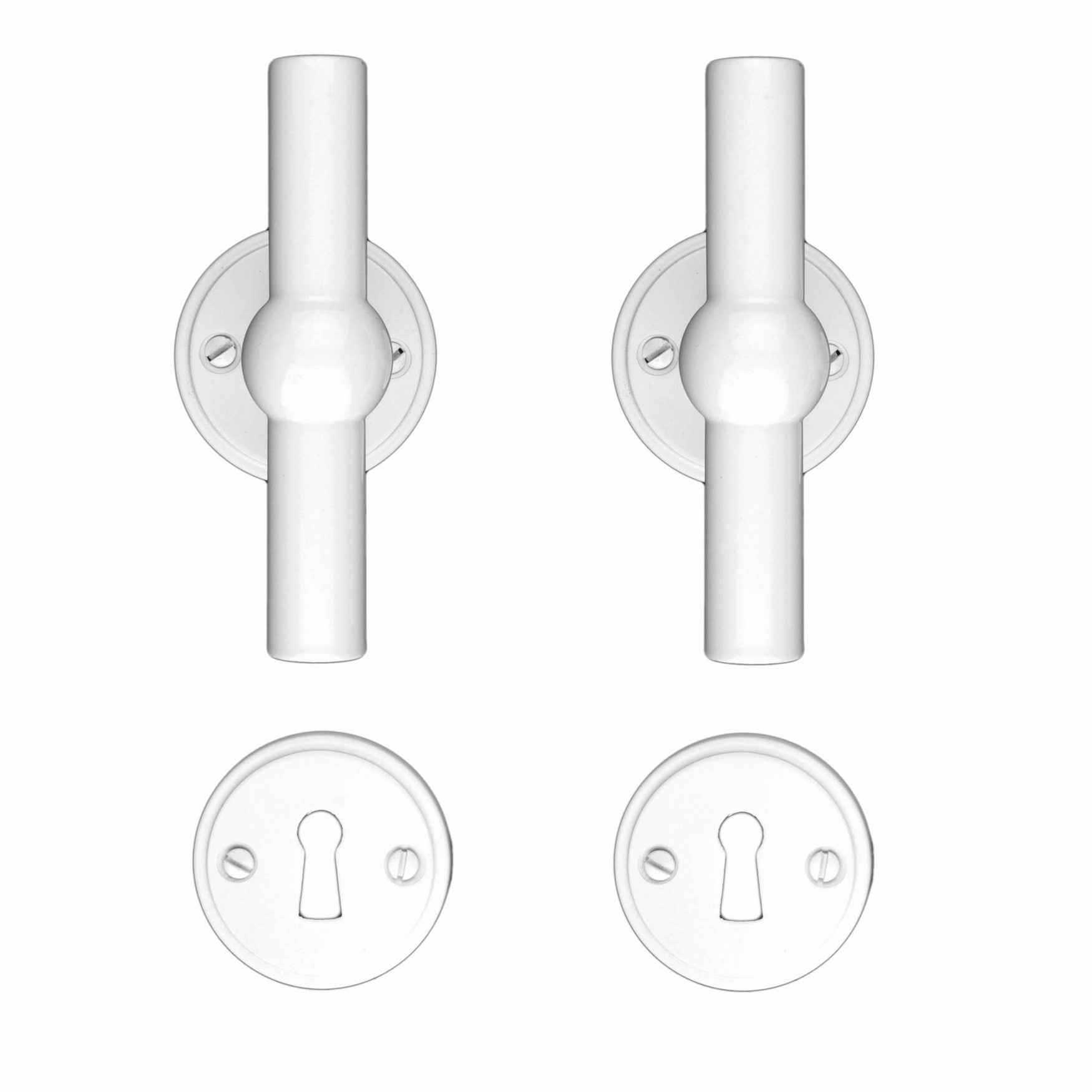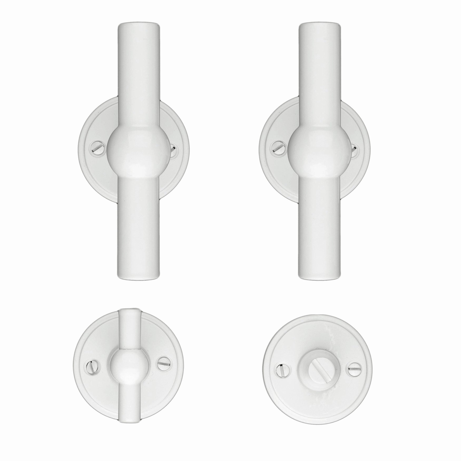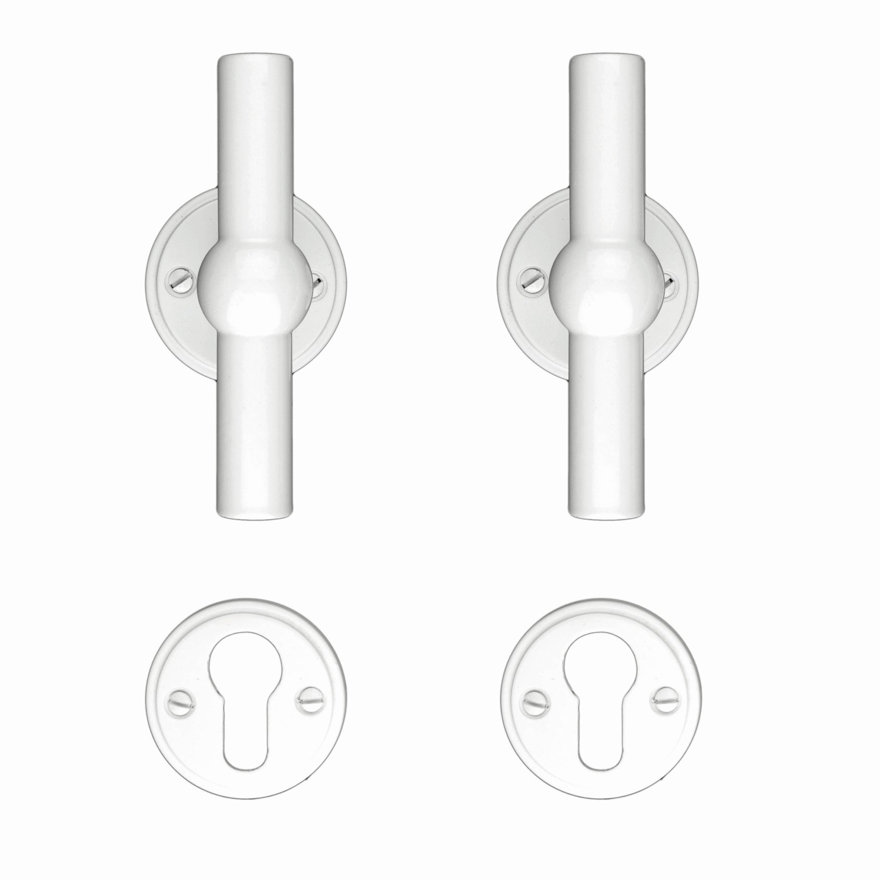 Poignées de porte blanches Petana T+T sur une fine rosace ronde disponibles en 4 variantes