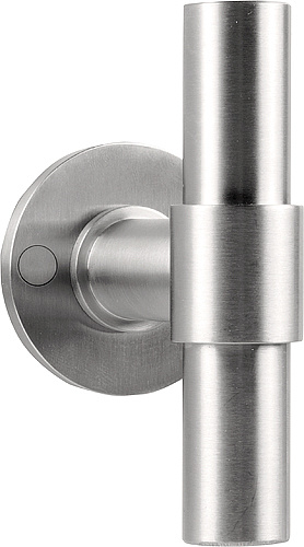Ces poignées de porte en acier inoxydable sont montées sur des rosaces rondes à ressort de 50 mm de diamètre et de seulement 5 mm d'épaisseur. Elles sont également disponibles dans d'autres versions.