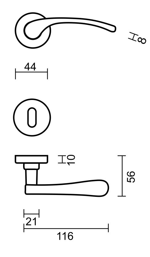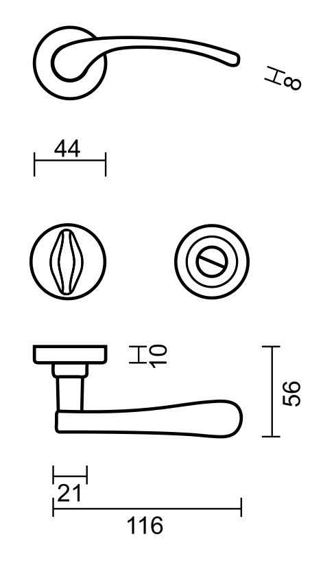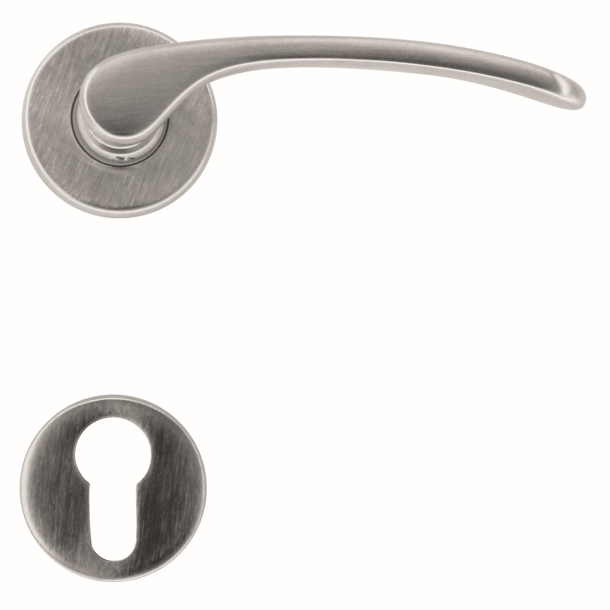 Ces poignées de porte sont disponibles en 4 variantes : sans plaques à clés, avec plaques à clés, avec plaques à cylindre et avec ferrures pour toilettes. Faites votre choix dans le menu déroulant en haut à droite .