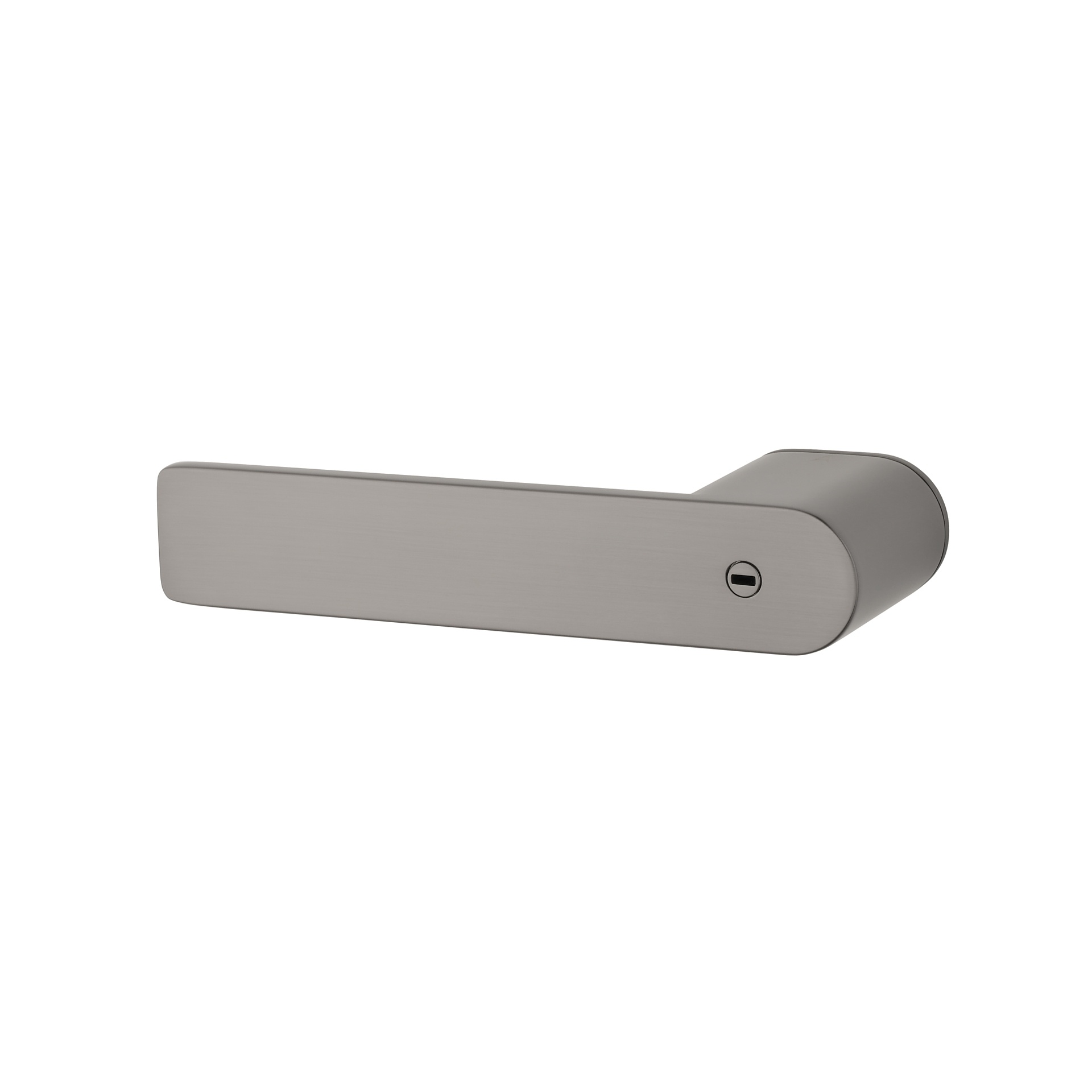 Sur les portes de toilettes, le verrou est discrètement intégré à la poignée. Le bouton avec indicateur vert/rouge est idéalement situé sur le dessus de la poignée. Dans le menu déroulant en haut à droite, vous pouvez choisir entre des poignées sans bouton de verrouillage ou le bouton de verrouillage intégré à la poignée de porte gauche ou droite.