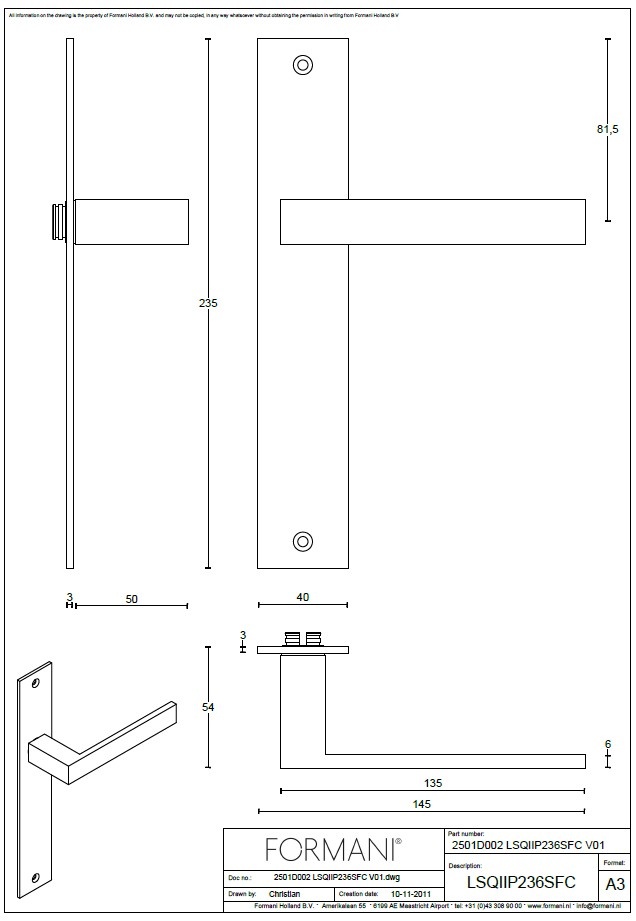 La Formani LSQ2P236SFC est une poignée de porte élégante de la collection SQUARE, conçue par Jan Des Bouvrie.