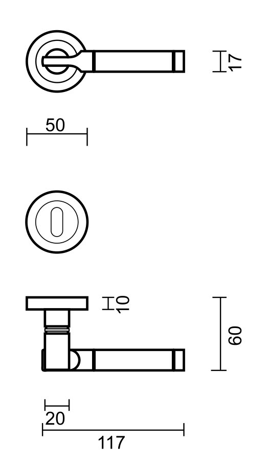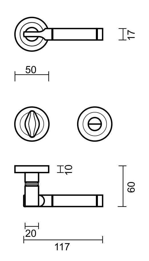 Ces poignées de porte sont disponibles en 4 variantes : sans plaques à clés, avec plaques à clés, avec plaques à cylindre et avec ferrures pour toilettes. Faites votre choix dans le menu déroulant en haut à droite .