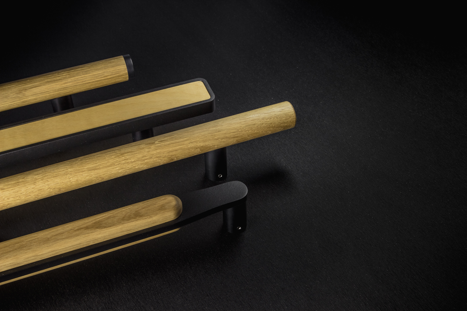 La poignée de porte en chêne est dotée d'une huile protectrice jusqu'à 3 fois, ce qui assure une longue durée de vie au bois. Les supports sont en aluminium et sont finis avec un revêtement noir anodisé.