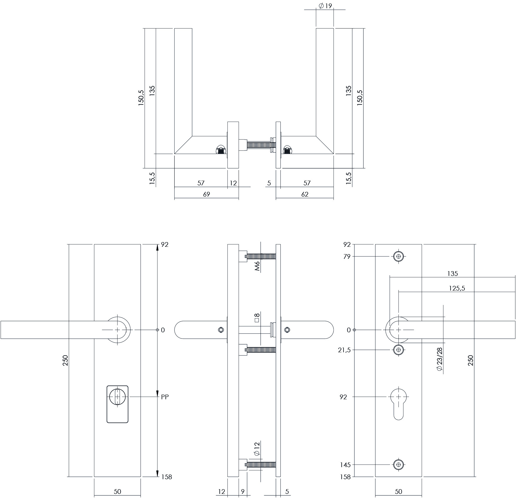 Cet ensemble rectangulaire de ferrures pour porte arrière est équipé d'une protection supplémentaire contre l'effraction et est homologué SKG*** . Cet ensemble est doté d'une poignée de porte assortie des deux côtés.