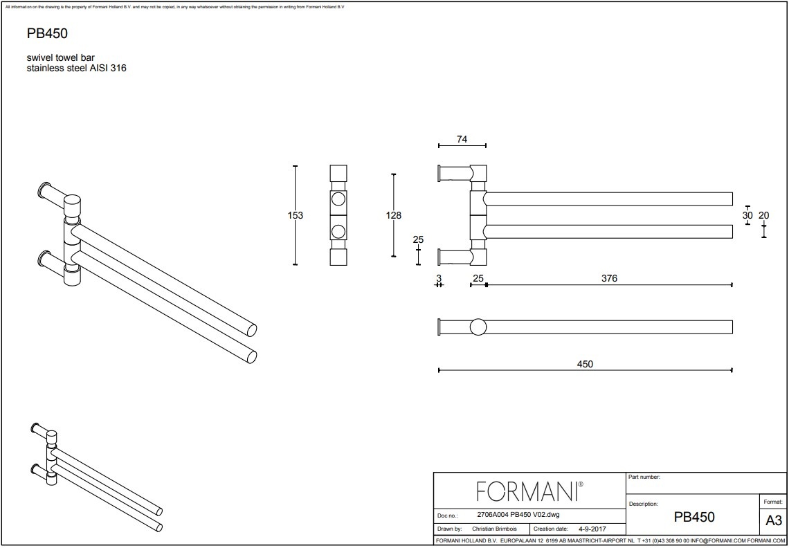 Magnifique porte-serviettes rotatif de la collection ONE de Formani en acier inoxydable mat. Ce porte-serviettes offre ordre et commodité.