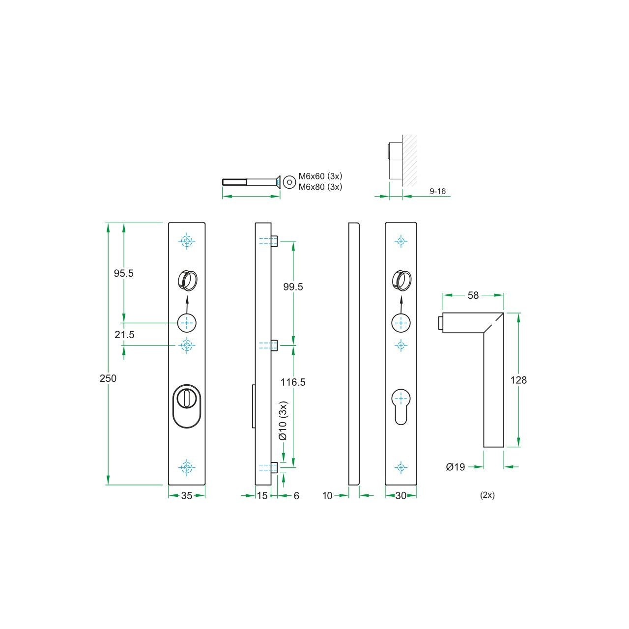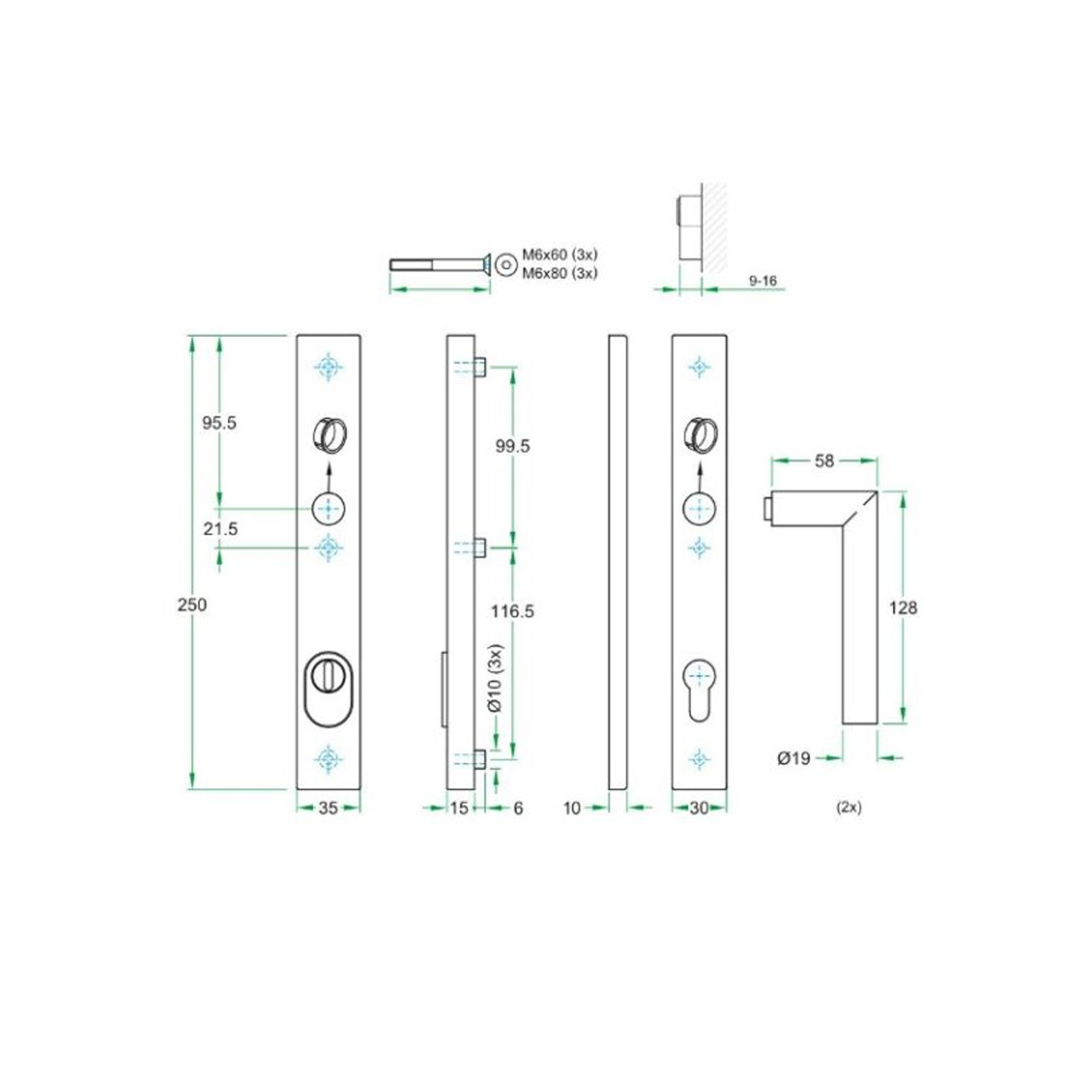 La fixation par vis dissimulées à l'intérieur du panneau de porte confère une esthétique épurée et moderne, sans points de fixation apparents. Adaptée aux portes de 37 à 57 mm d'épaisseur et compatible avec les portes en aluminium, bois, PVC et acier, cette quincaillerie est polyvalente et convient aussi bien aux espaces résidentiels qu'aux établissements de santé, ainsi qu'à divers types de bâtiments à fort passage.