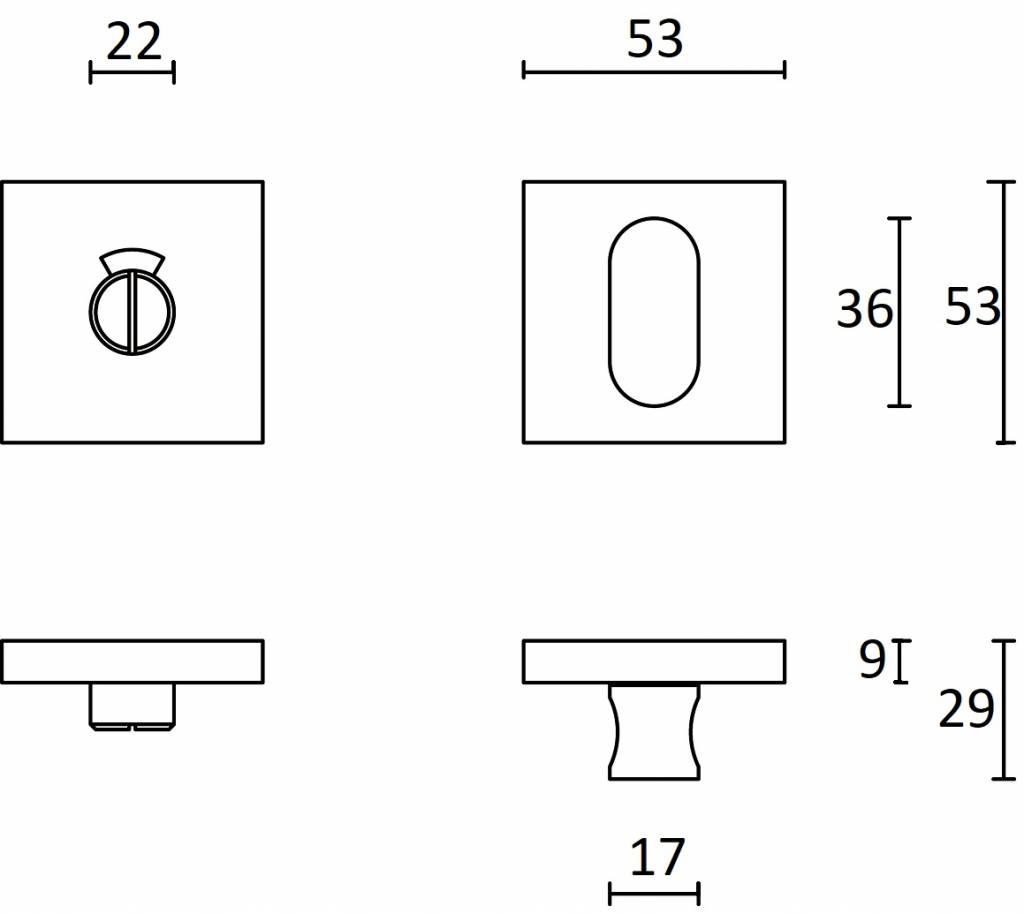 L'ensemble de toilette carré a un diamètre de 53 mm et est équipé d'un grand indicateur rouge-blanc.
