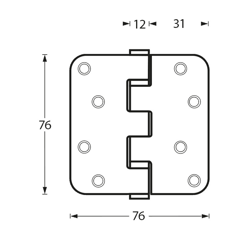 Cette charnière à angles arrondis convient aux portes s'ouvrant à droite ou à gauche, grâce à son axe et son embout amovibles. Montée sur roulement à billes, elle mesure 76 mm de haut et 76 mm de large une fois dépliée, et ses lames ont une épaisseur de 2,5 mm. Elle est adaptée aux portes pesant jusqu'à 50 kg.