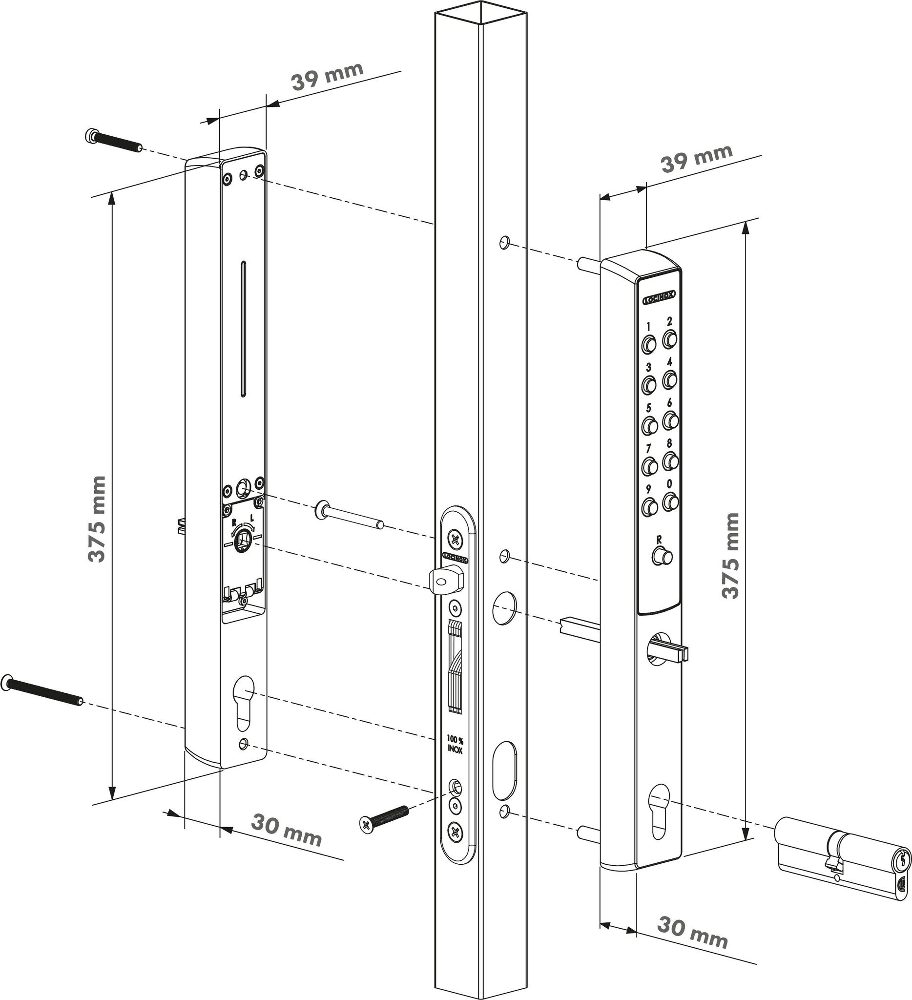 Cette serrure à code mécanique « VITA » argentée, simple et sans entretien, est spécialement conçue pour les portails à serrure à mortaiser. Fonctionnant entièrement sans électricité, elle est compatible avec les serrures à mortaiser FORTYLOCK, FIFTYLOCK, SIXTYLOCK et EIGHTYLOCK.