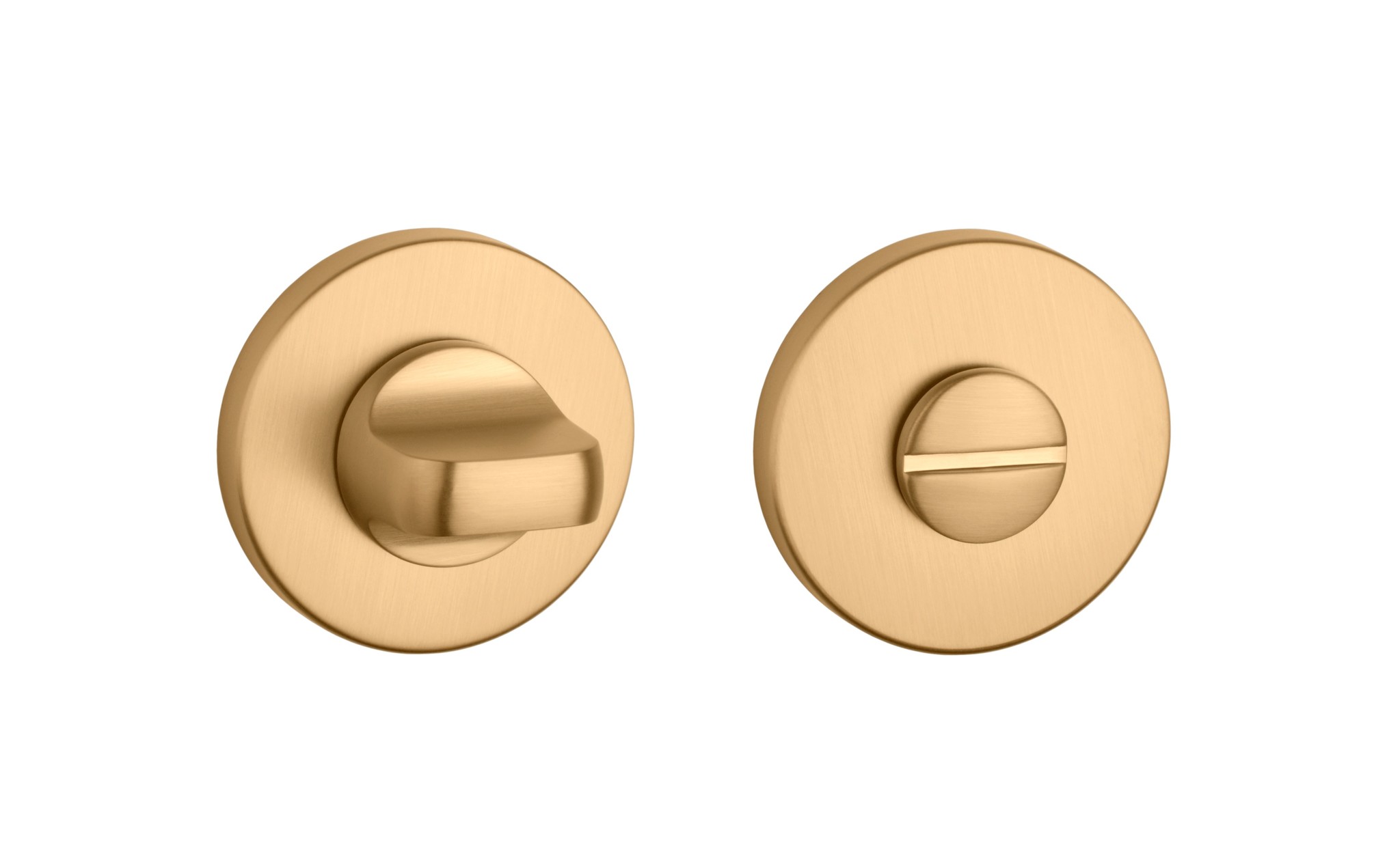 Cette ferrure WC pour poignées de porte APRILE est dotée de rosaces rondes ultra fines de seulement 5 mm pour un rendu esthétique sur les portes.