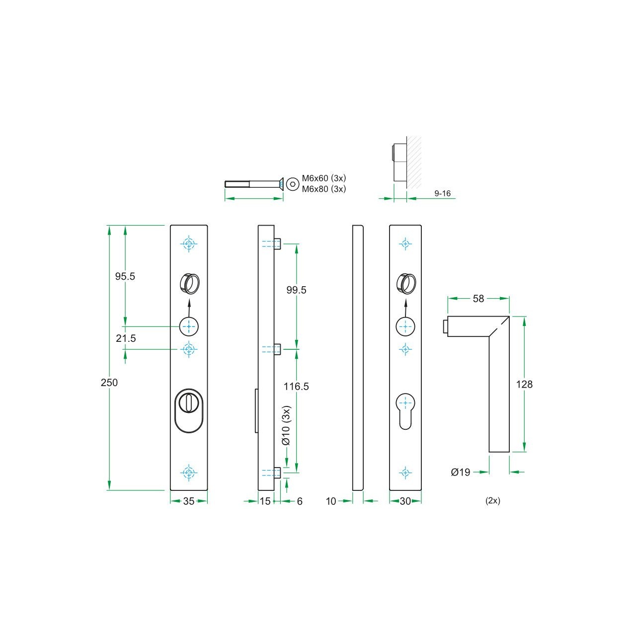 Le bouclier intérieur avec montage à vis dissimulé offre un look élégant et moderne, sans points de montage visibles. Adapté aux épaisseurs de porte de 37 à 57 mm avec un axe de 92 mm et applicable aux portes en aluminium, bois, PVC et acier, ce ferrure le rend polyvalent aussi bien dans les maisons et les établissements de santé que dans divers types de bâtiments à usage intensif.