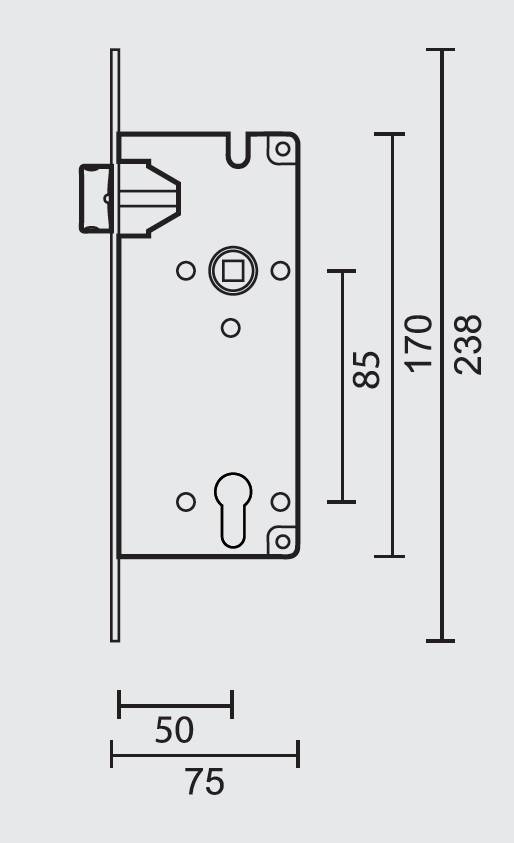 Les serrures à cylindre ont une façade arrondie de 238x22mm et sont fournies avec des vis et une contre-plaque arrondie.