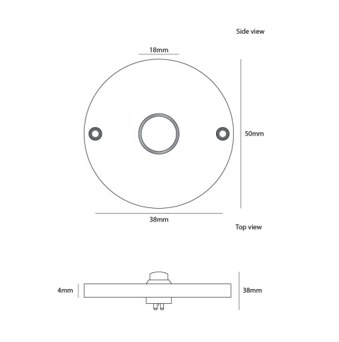 La sonnette qui repose sur une rosace ronde de 50 mm est fournie par pièce, matériel de montage compris. Les trous de montage sont déjà prévus dans la rosace et sont à un entraxe de 38 mm.