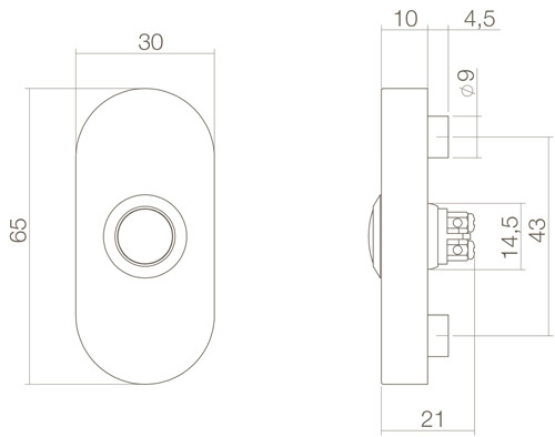 Sonnette ovale dissimulée 65x30x10 en acier inoxydable avec revêtement noir mat