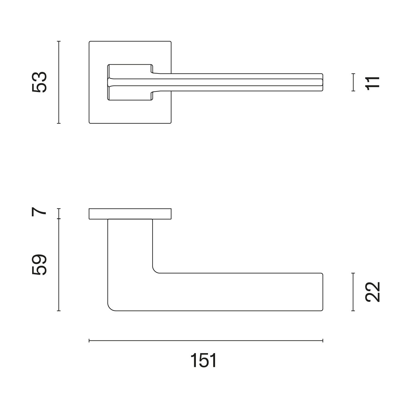 Les poignées de porte en titane, équipées de rosaces inférieures métalliques avec cames, reposent sur des rosaces carrées de 53x53mm d'une épaisseur de 7mm.