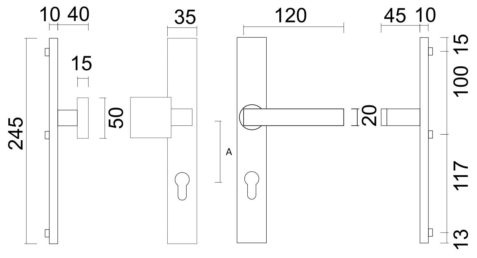 Les ferrures de porte sur bouclier droit sont souvent utilisées en rénovation car elles recouvrent alors les trous des anciennes poignées.