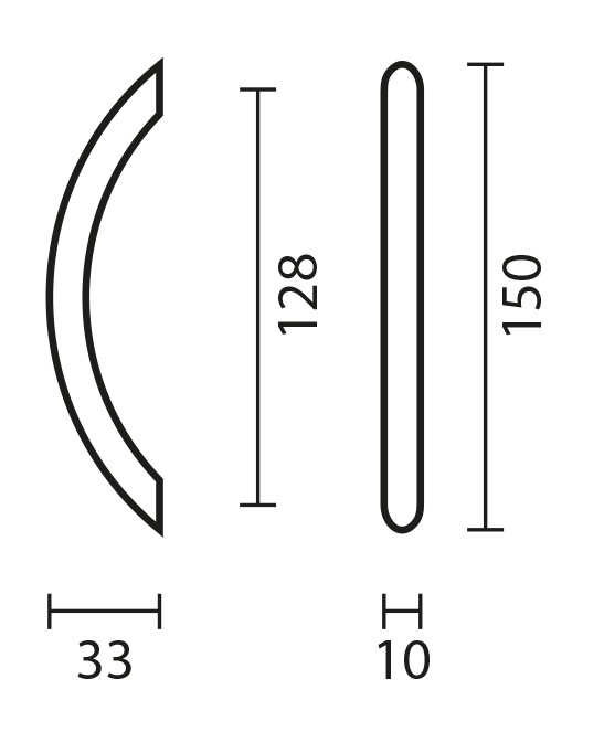 La poignée a une épaisseur de 10 mm (A) et la taille de la tige (B) est de 128 mm.