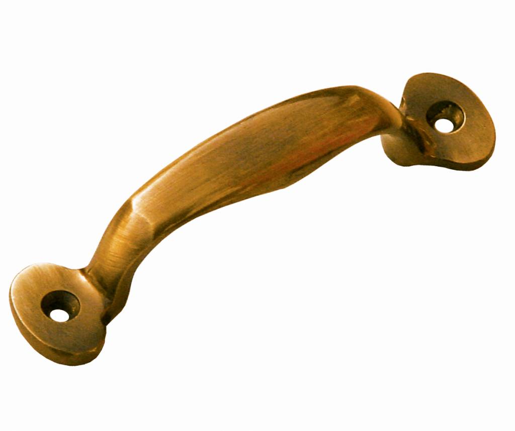 Ces poignées de meubles en bronze ont la forme d'un support.