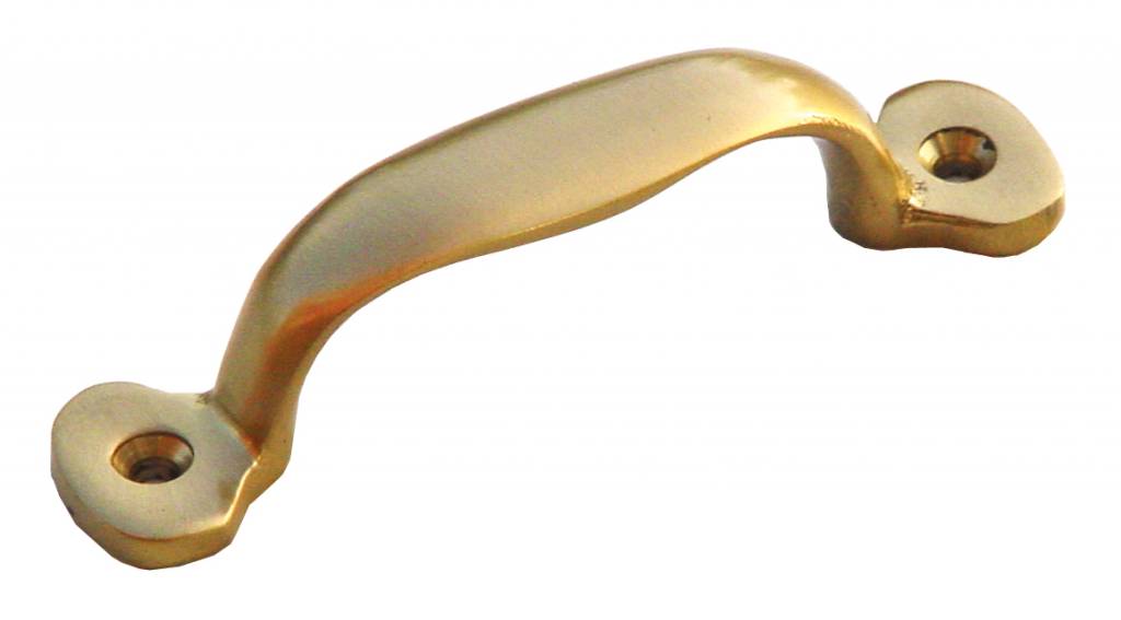 Ces poignées de meubles ont la forme d'un support et sont en or mat.