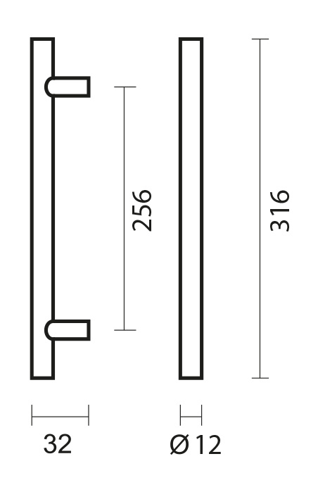 Poignée de meuble en acier inoxydable modèle T 12/256/316 mm