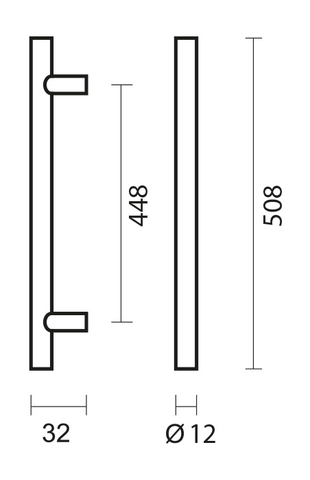 Poignée de meuble en acier inoxydable modèle T 12/448/508