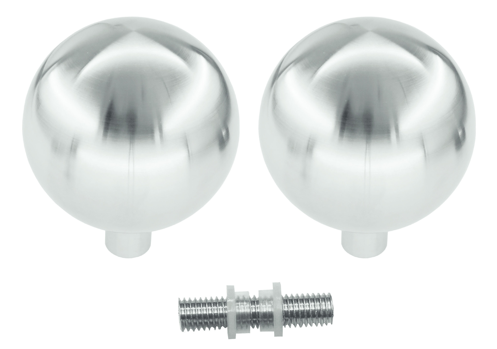 Ce dessus fixe "B80" est en acier inoxydable massif et est sphérique. La sphère a un diamètre de 80 mm et repose sur une base cylindrique de 19 x 23 mm. La hauteur totale est de 99 mm.