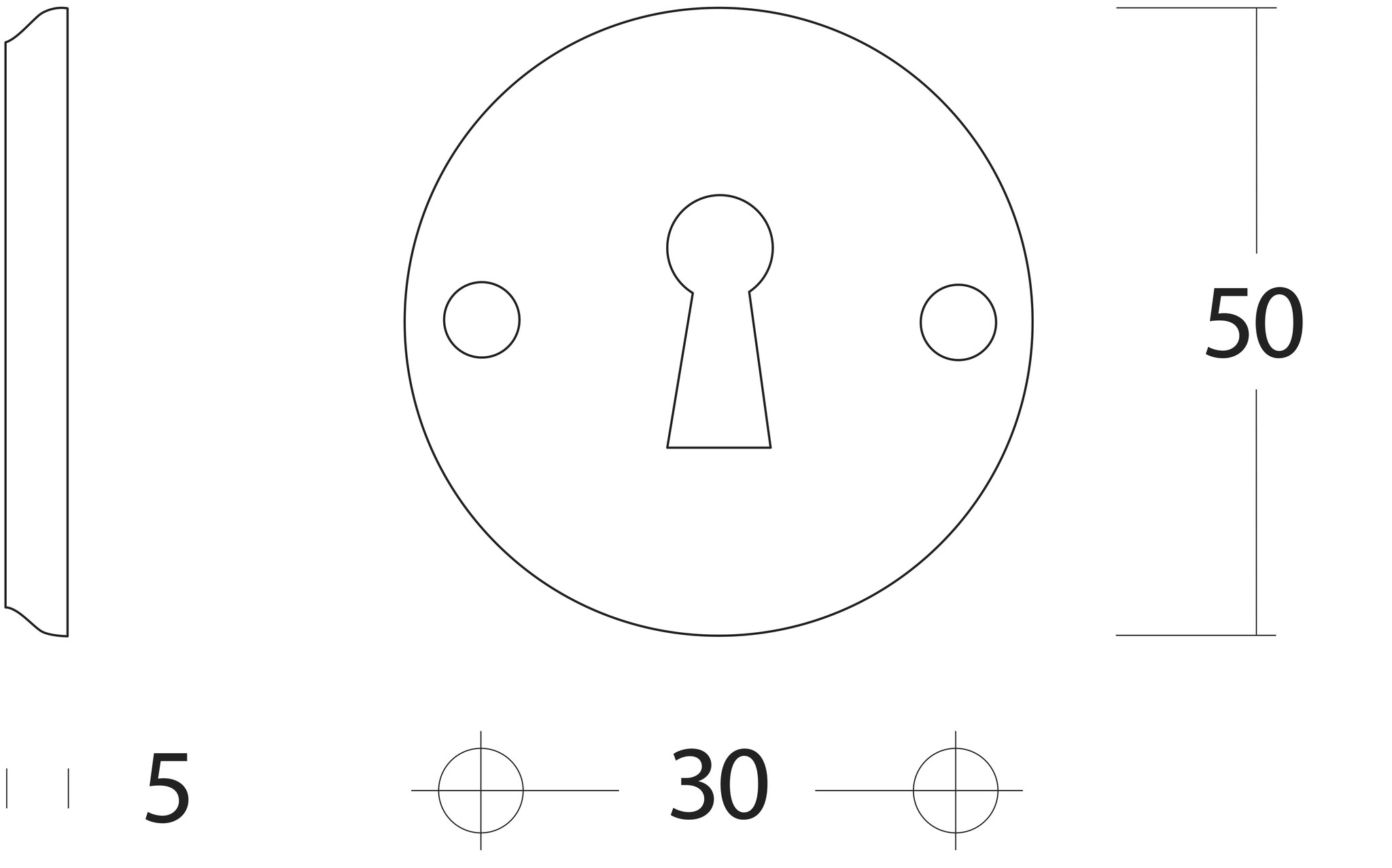 Ces rosaces ont un diamètre de 50 mm et une épaisseur de 5 mm. Les rosaces sont fournies par paires avec les vis correspondantes.