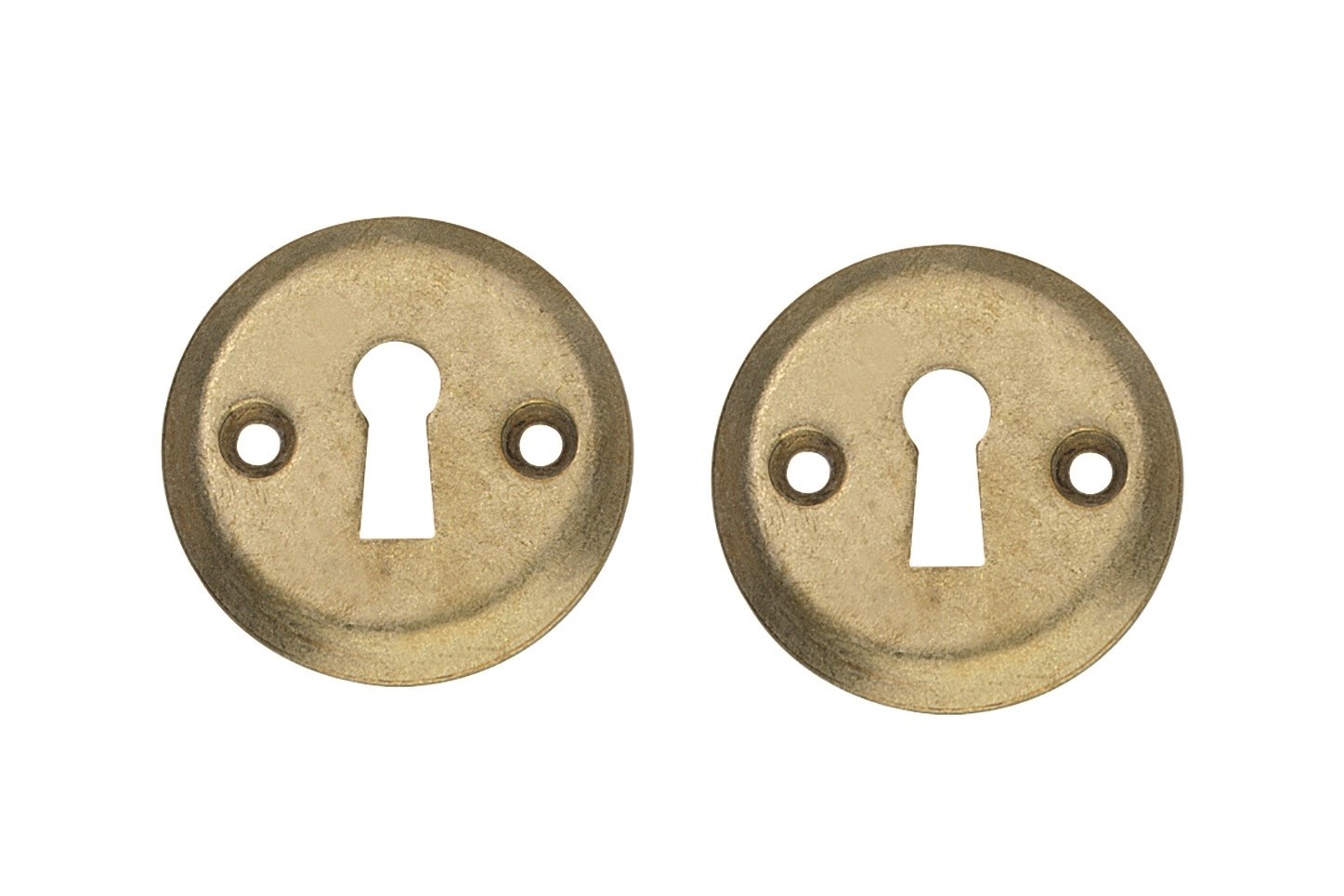 Ces rosaces rondes d'Intersteel avec trou de serrure sont en laiton poli et équipées de trous de vis.