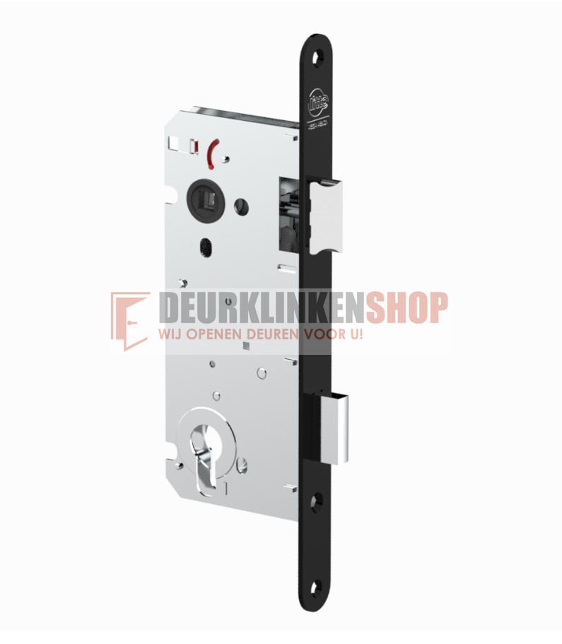 Serrure à cylindre Litto Profile avec axe 110mm / mandrin 50mm, noir avec plaque frontale arrondie 260x22mm