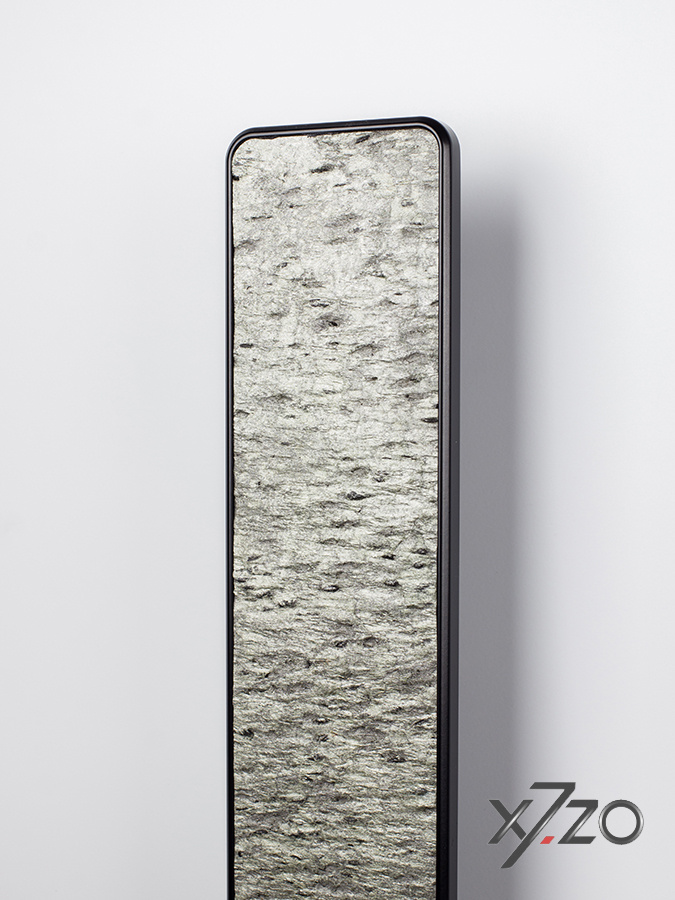 Cette magnifique poignée de porte rectangulaire, conçue et produite en Europe, combine une base en aluminium robuste avec une finition raffinée en placage de pierre dans une chaude couleur argent brillant.