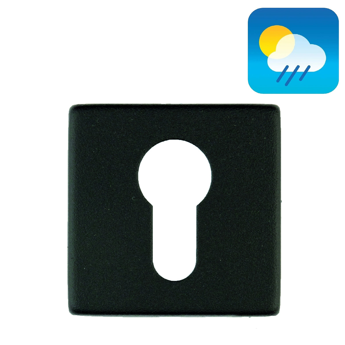 Zwart cilinderplaatje met cilinderopening. Het rozet is 50x50mm en is voorzien van een zwarte UV structuurcoating.