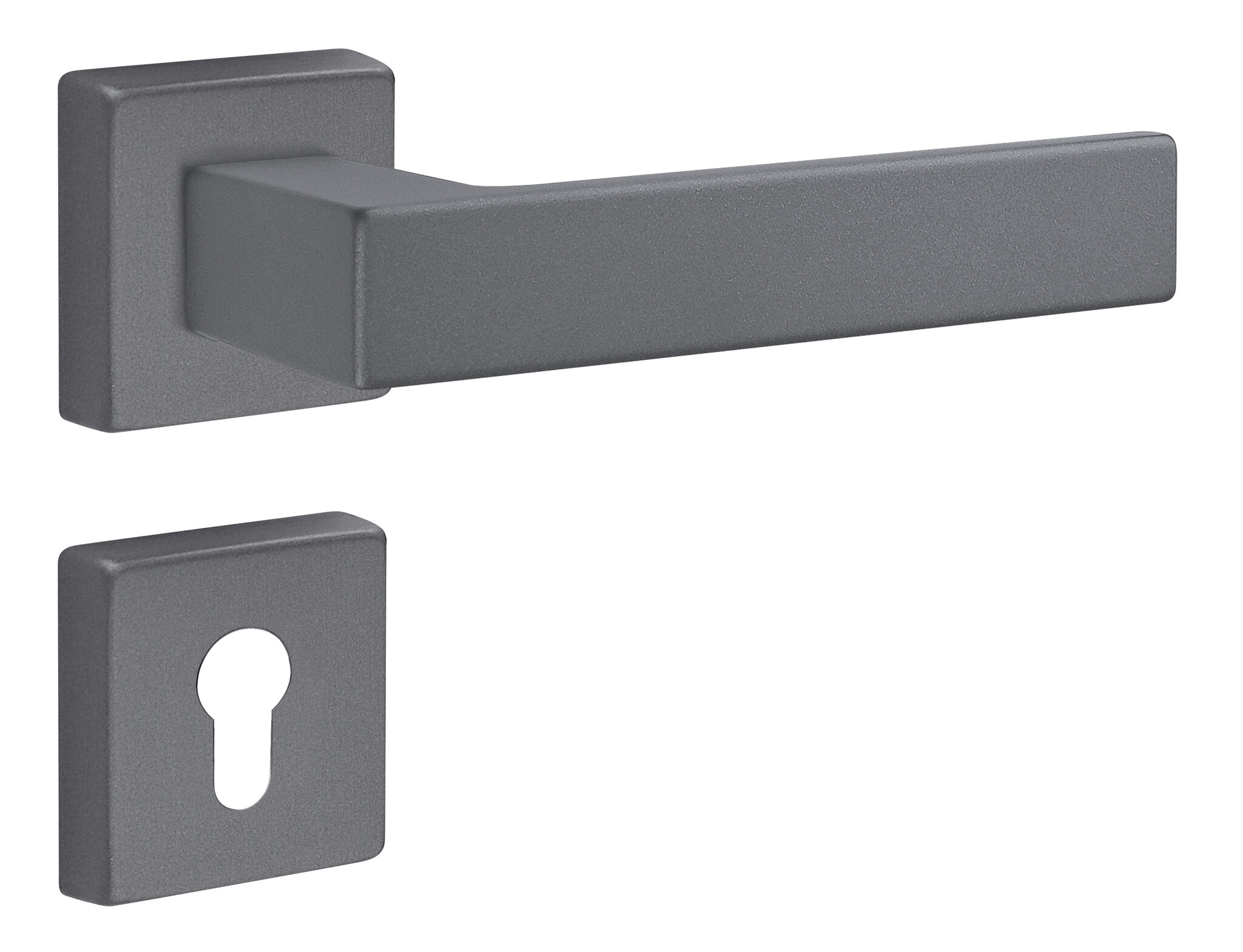 Antraciet grijze deurklinken Kubo op vierkant rozet